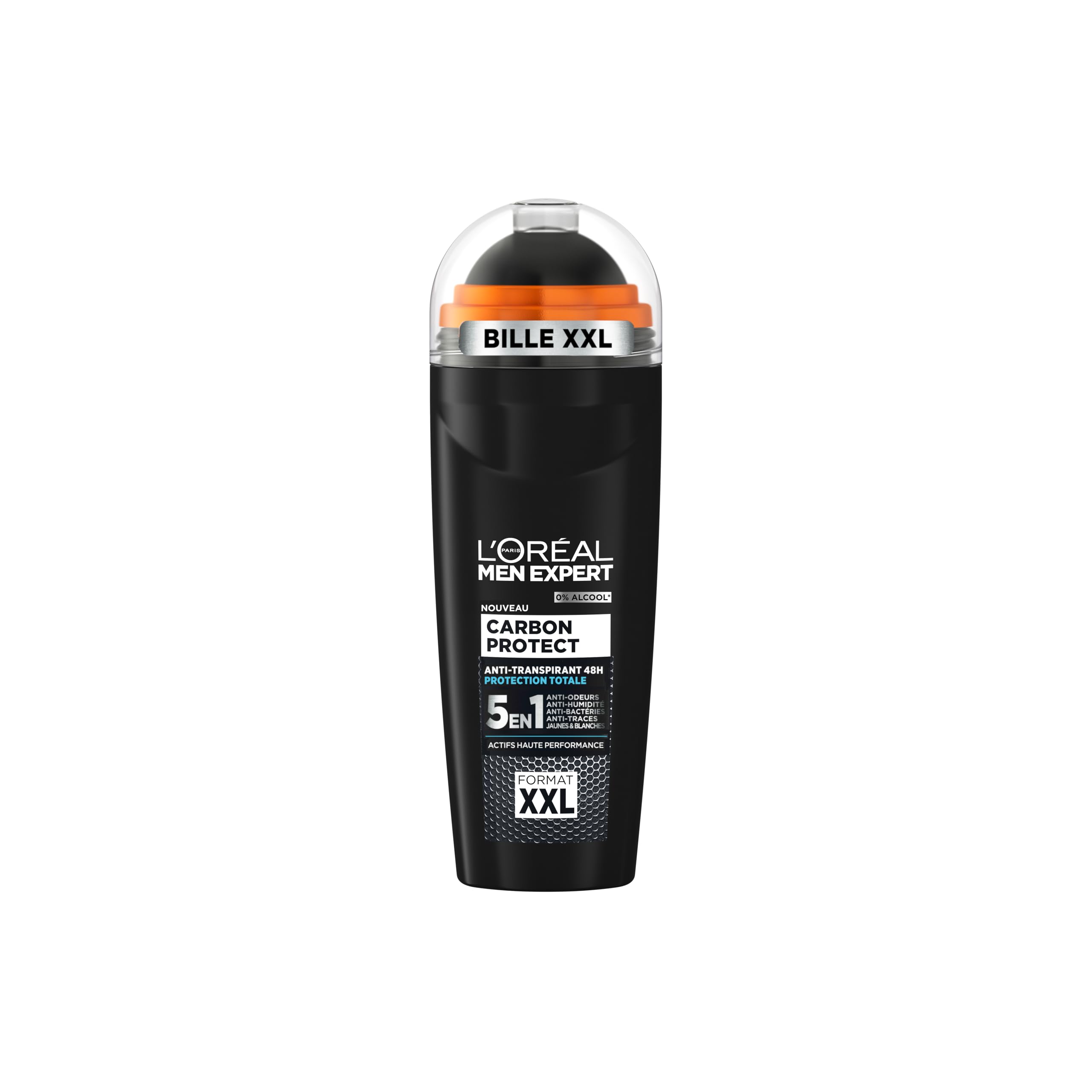 Our Men Expert Carbon Protect 5-in-1 roll-on antiperspirant fights the 5 signs of perspiration (odor, wetness, bacteria, yellow white stains) thanks to its formula enriched with absorbent carbon. It provides 48-hour protection and ultra-fast drying. Discover its new Boosted Fresh Tech formula for an optimized fresh scent. Shake well before each use. XXL 100ml size, twice the formula of the standard size. Also discover the Pure Carbon shower gel from the same range: every morning, it's the same routine: shower, shampoo, shave, moisturizer… Discover the power of carbon shower gel to be impeccably clean from head to toe in one simple step! INGREDIENTS 882463 01 - INGREDIENTS: AQUA WATER • ALUMINUM HYDROCHLORIDE • DIMETHICONE • C14-22 ALCOHOLS • STEARETH-100 PEG-136 HDI COPOLYMER • PARFUM FRAGRANCE • PERLITE • CHARCOAL POWDER • POLYGLYCERIN-10 • POLYGLYCERYL-10 MYRISTATE • POLYGLYCERYL-10 STEARATE • TETRASODIUM GLUTAMATE DIACETATE • C12-20 ALKYL GLUCOSIDE • CITRIC ACID • PEG-4 • PEG-4 DILAURATE • PEG-4 LAURATE • CITRONELLOL • COUMARIN • LIMONENE • LINALOOL • IODOPROPYNYL BUTYLCARBAMATE • SODIUM DEHYDROACETATE (F.I.L. C265786 1). INSTRUCTIONS FOR USE Shake before each use. Apply by gliding the rollerball. Do not apply directly after shaving. SAFETY WARNING The ingredient lists for our brand's products are regularly updated. Before using any of our brand's products, please read the ingredient list on the packaging to ensure the ingredients are suitable for your personal use. See more