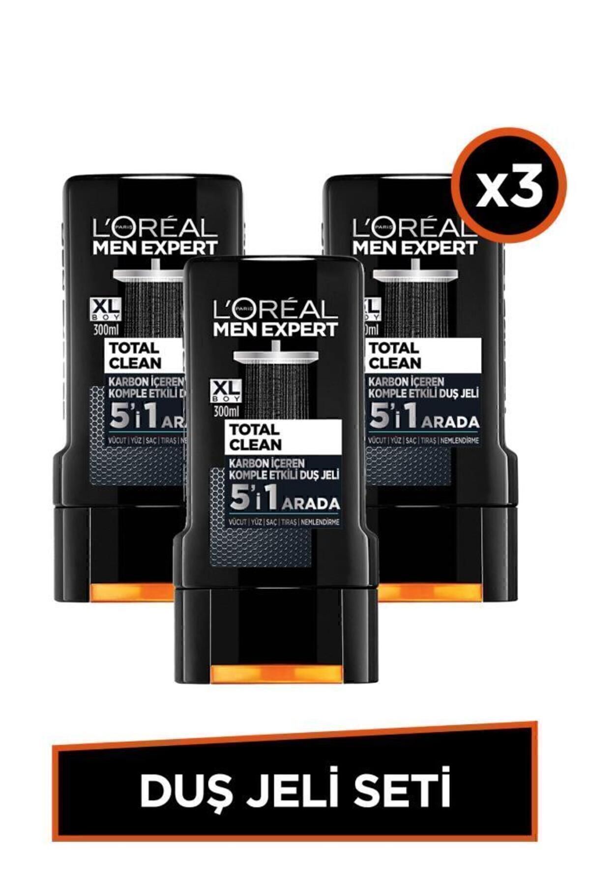 L'Oreal Paris Men Expert Total Clean 5 in 1 Charcoal Shower Gel 300 Ml Set of 3