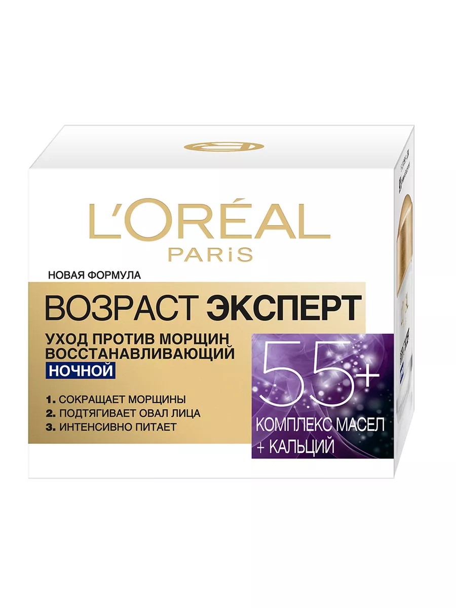 Восстанавливающий уход против морщин Возраст Эксперт 55+ создан специально для ухода за кожей после 55 лет и визуально устраняет возрастные признаки.