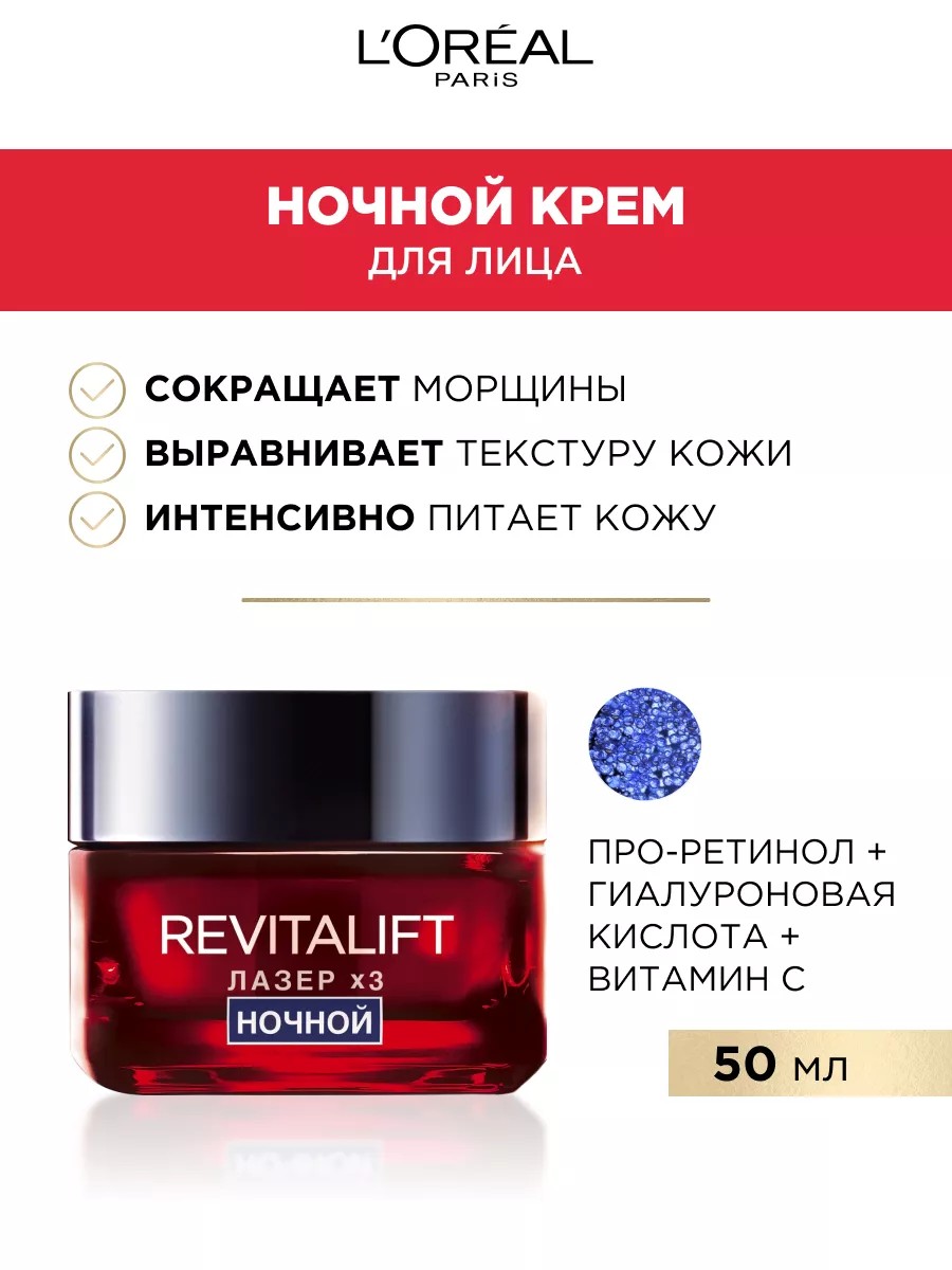 Revitalift Лазер х3 - это инновационный ночной крем-маска, разработанный лабораторией Лореаль Париж специально для ухода за возрастной кожей. Уникальная формула крема обеспечивает тройной эффект: восстанавливает упругость кожи, разглаживает морщины и выравнивает текстуру. При регулярном использовании кожа становится заметно подтянутой и эластичной, наполненной сиянием и энергией.