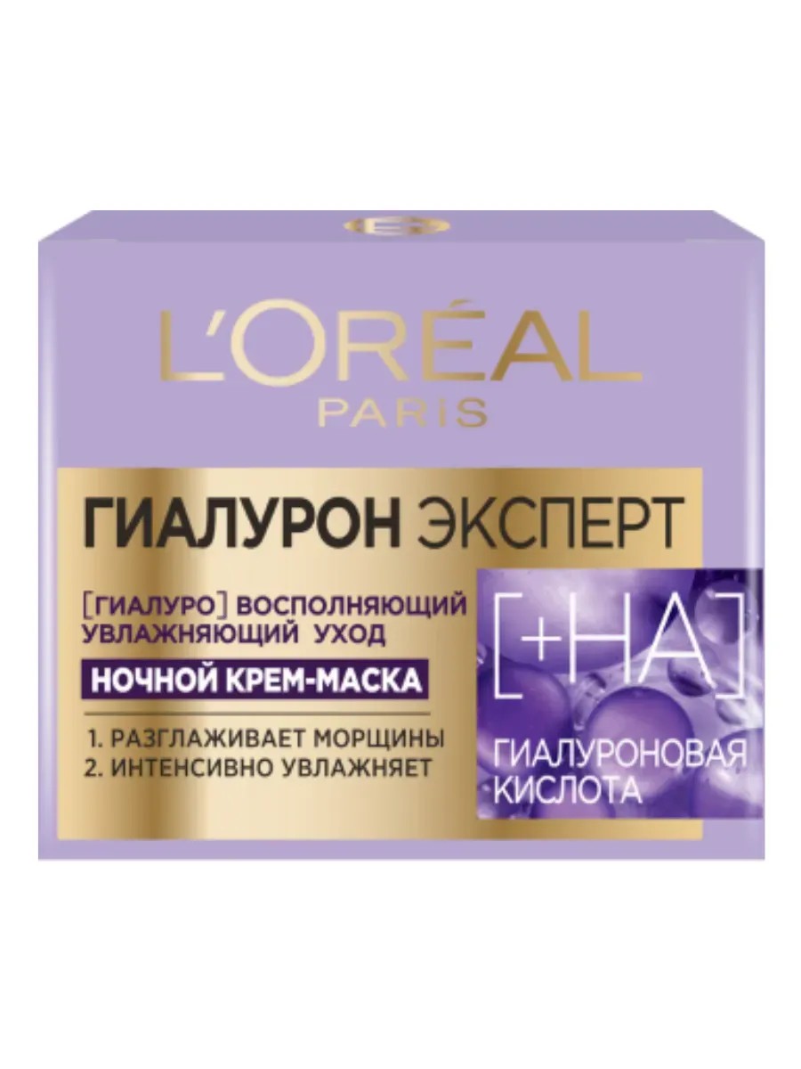 Новый ночной уход Гиалурон Эксперт от L'Oreal Paris (Лореаль Париж), обогащен высокой концентрацией 2 типов гиалуроновой кислоты. Высокомолекулярная гиалуроновая кислота способствует увлажнению и помогает разглаживать поверхность кожи. Низкомолекулярная гиалуроновая кислота способствует восполнению влаги в коже, проникая в слои эпидермиса. Кожа наполнена влагой, морщины разглажены, свежесть и сияние возвращены. Подходит для всех типов кожи, в том числе для чувствительной.