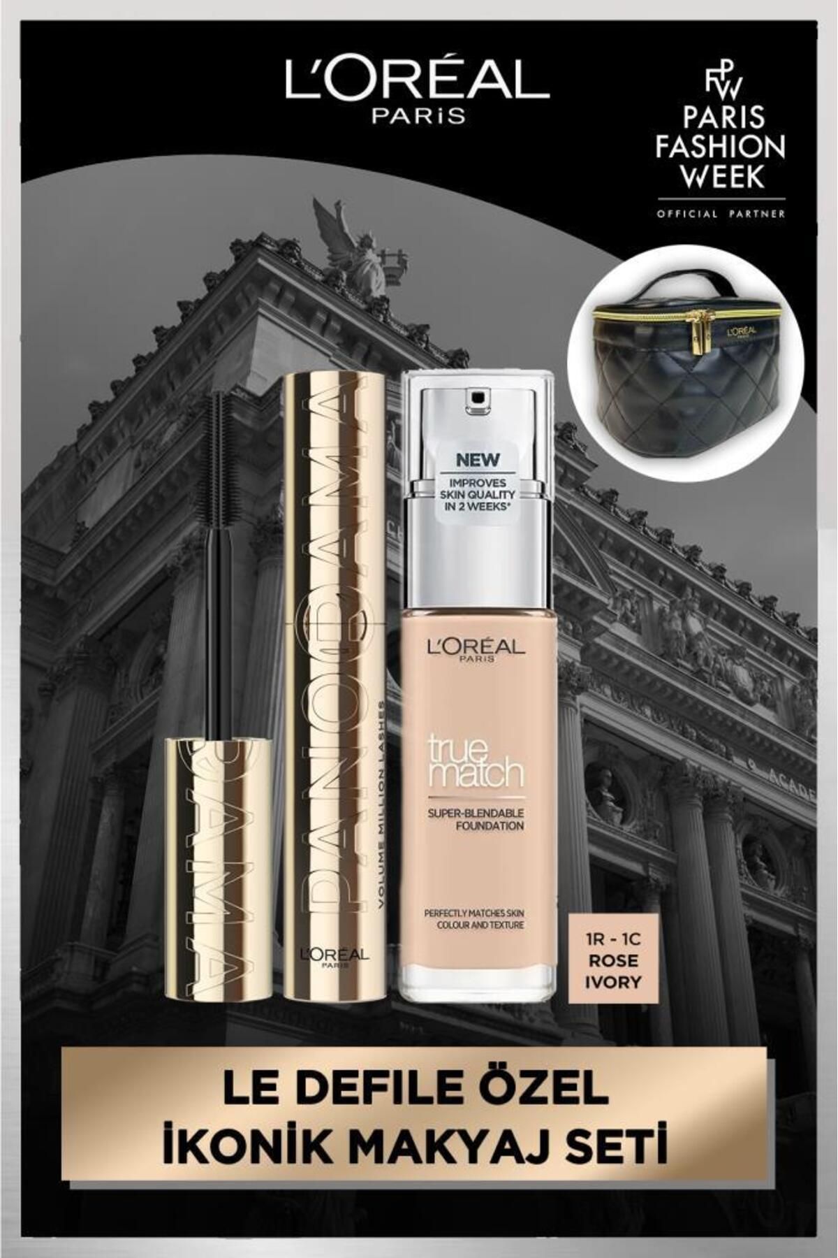 L'Oreal Paris Panorama Mascara & True Match Foundation 1R-1C Rose Ivory Bag Gift Set
