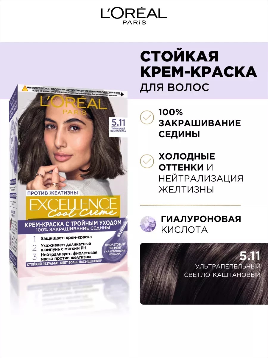 L'OREAL PARIS Стойкая крем-краска для волос Excellence 5.11