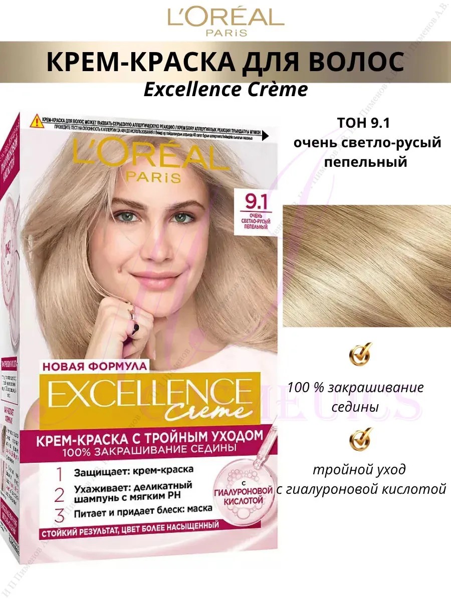 L'OREAL PARIS Стойкая крем-краска для волос Excellence тон 9.1