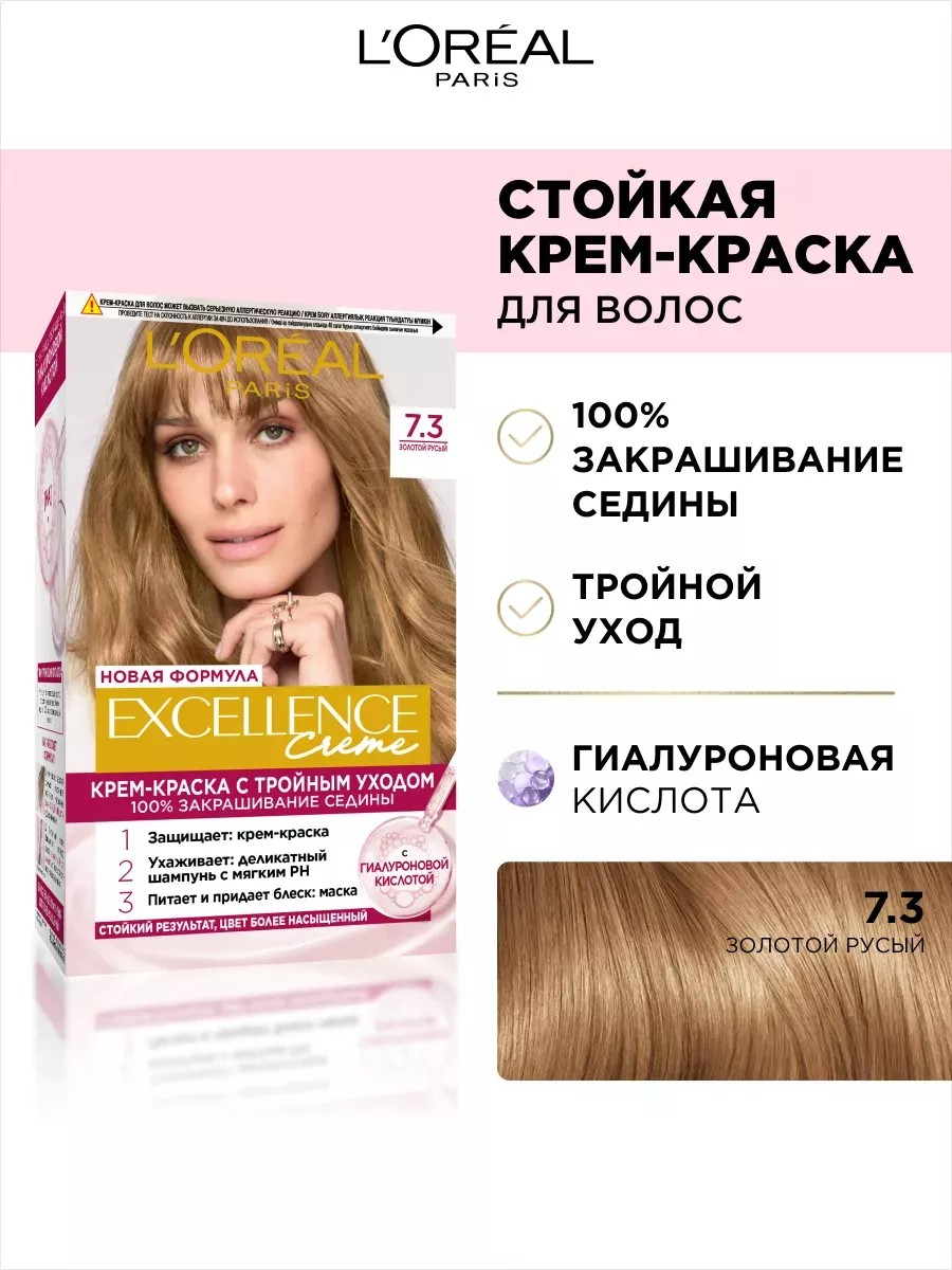 Стойкая крем-краска для волос EXCELLENCE с тройным уходом. Ритуал тройного ухода: уход за цветом, уход за кожей головы, уход за волосами. Крем-краска с тройным уходом Excellence от L'Oreal Paris. 100% закрашивание седины.