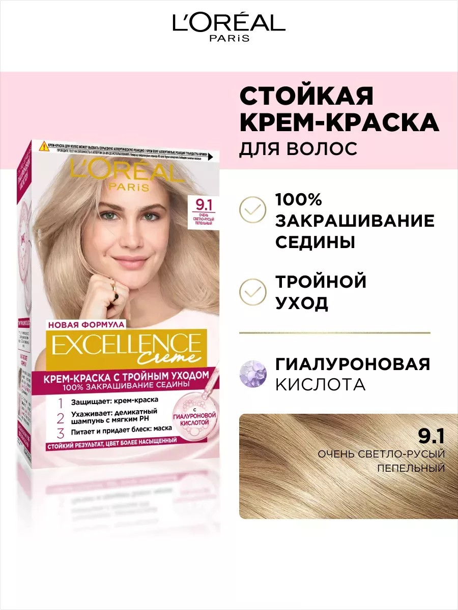 L'OREAL PARIS Стойкая крем-краска для волос Лореаль Excellence 9.1