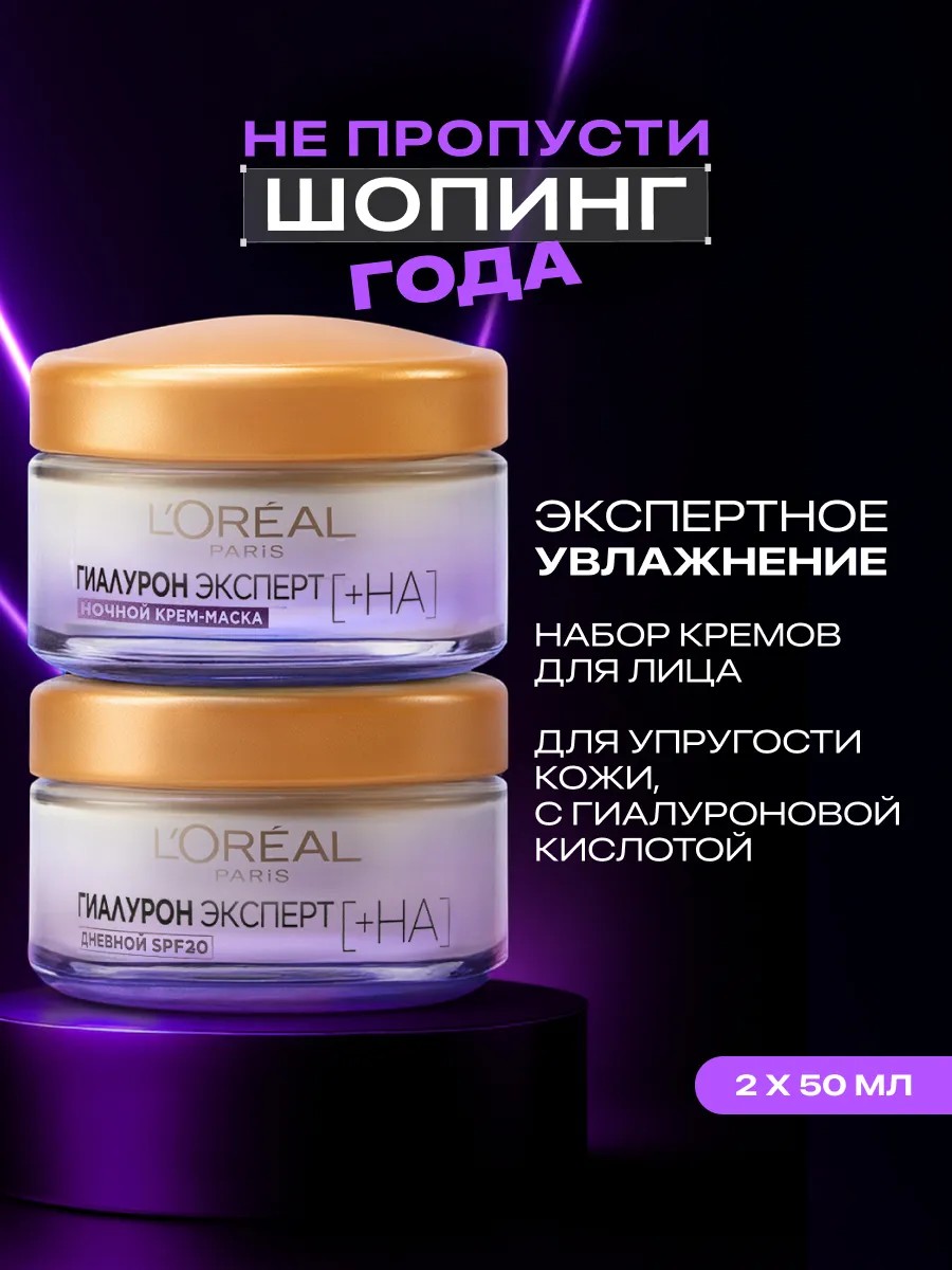 L'OREAL PARIS Набор Гиалурон Эксперт Кремы для лица дневной и ночной, 2 шт