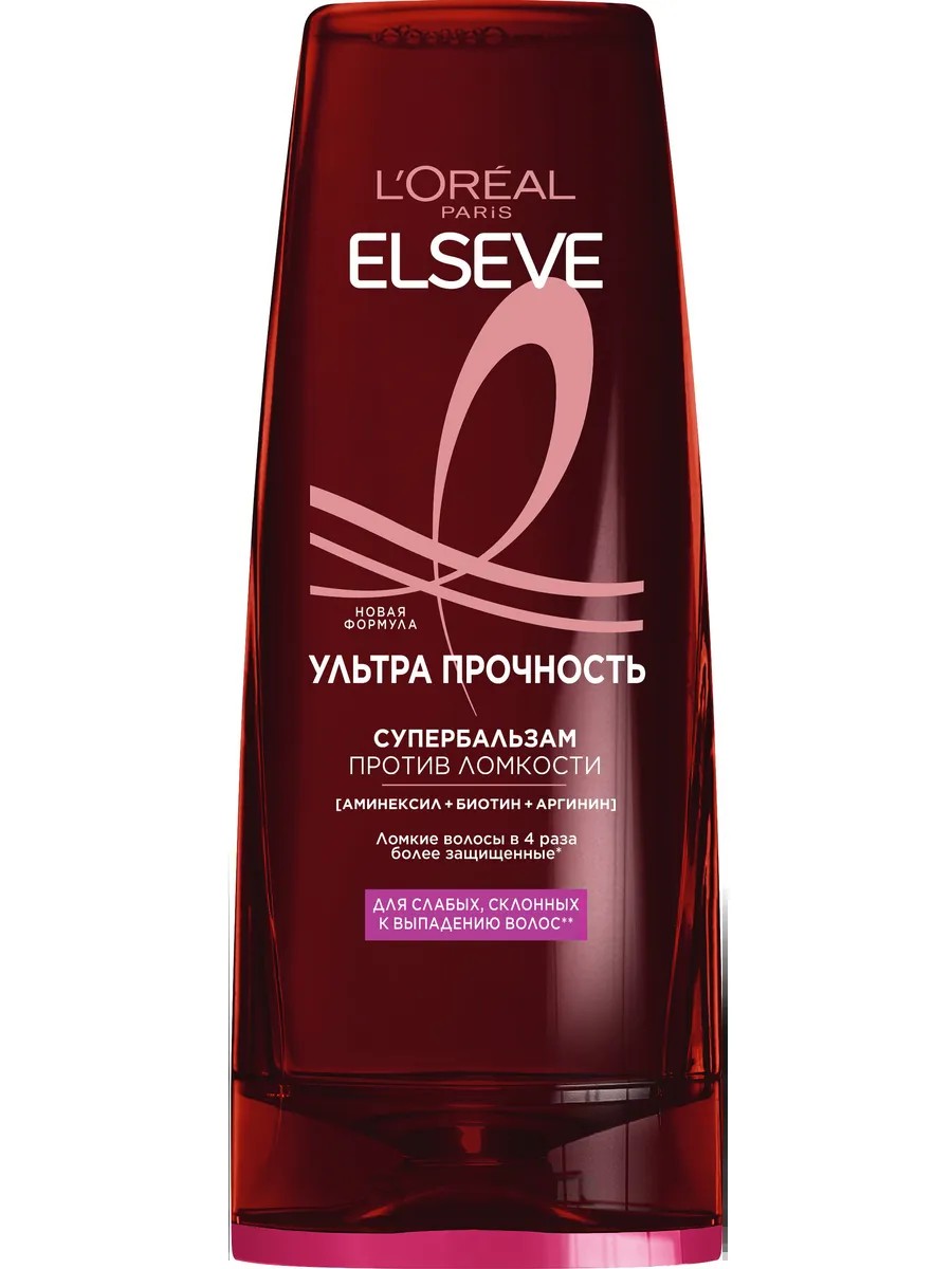 Супербальзам L'Oreal Paris Elseve Ультра прочность для слабых, склонных к выпадению волос, против ломкости, 400 мл. Ваши волосы слабые и ломкие? Стресс, смена погоды, укладка и стайлинг - всё это влияет на наши волосы. Они становятся более ломкими и слабыми. Укрепите свои волосы с Elseve! Активные ингредиенты: [АМИНЕКСИЛ + БИОТИН + АРГИНИН]. Данные ингредиенты проникают в волокно волоса, укрепляя их и делая более прочными. Способ применения: нанесите на влажные волосы, распределяя по всей длине до кончиков. Оставьте на 1 минуту, затем смойте. При попадании в глаза немедленно и тщательно промойте водой. Состав: 1261423 G4/КРАМ/ЯТКИВІ: AQUA/WATER, CETEARYL ALCOHOL, STEARAMIDOPROPYL DIMETHYLAMINE, ISOPROPYL MYRISTATE, CETYL ESTERS, PARFUM/FRAGRANCE, HELIANTHUS ANNUS SEED OIL/SUNFLOWER SEED OIL, DIAMINO PYRIMIDINE OXIDE, LACTIC ACID, SODIUM CHLORIDE, ARGININE, LIMONENE, BENZOIC ACID, BIOTIN, CAPRYLYL GLYCOL, TARTARIC ACID (F. I. L. Z70042395/1)