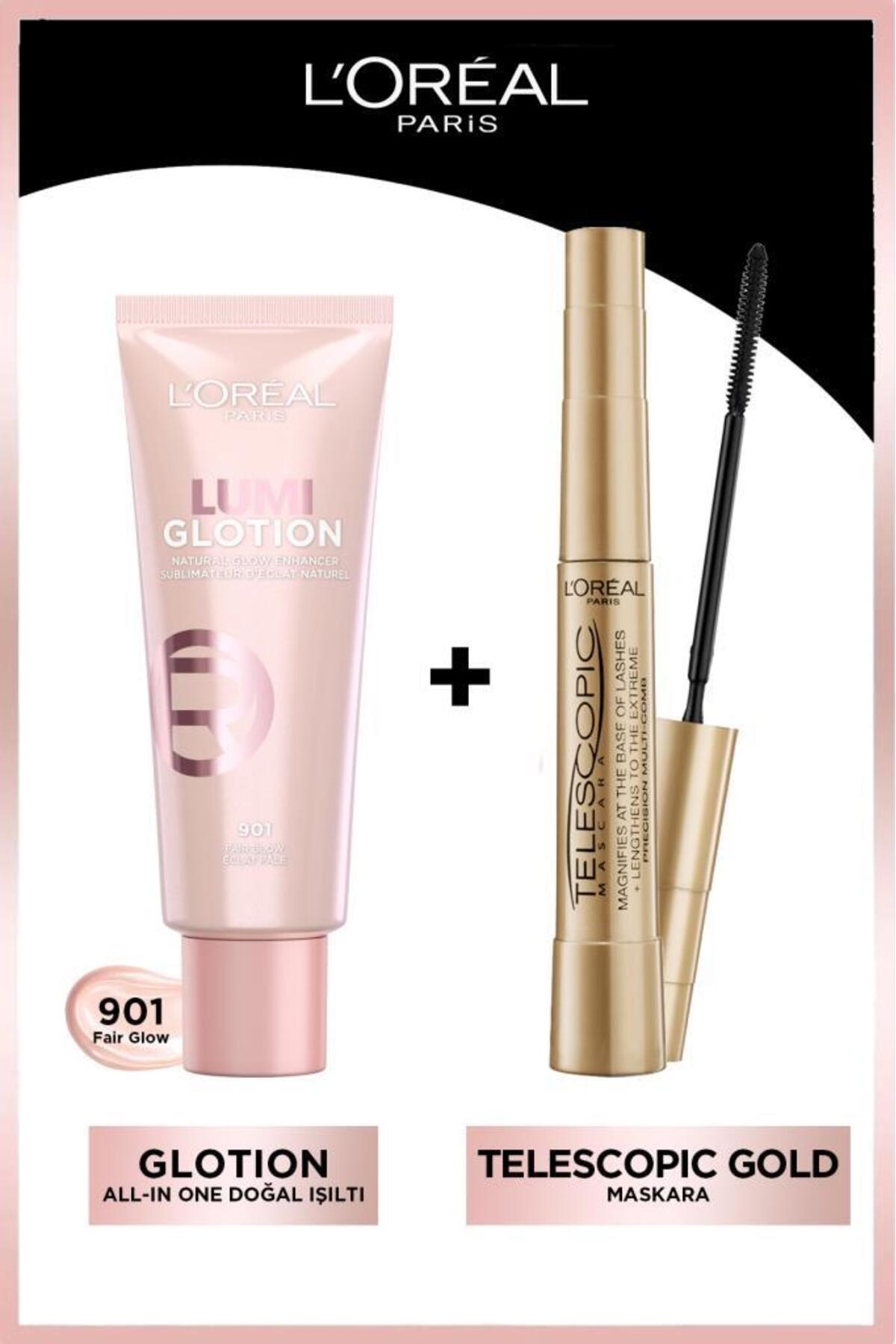 L'Oreal Paris Telescopic Mascara & Glotion All-in-one Natural Shine 901 Makeup Set