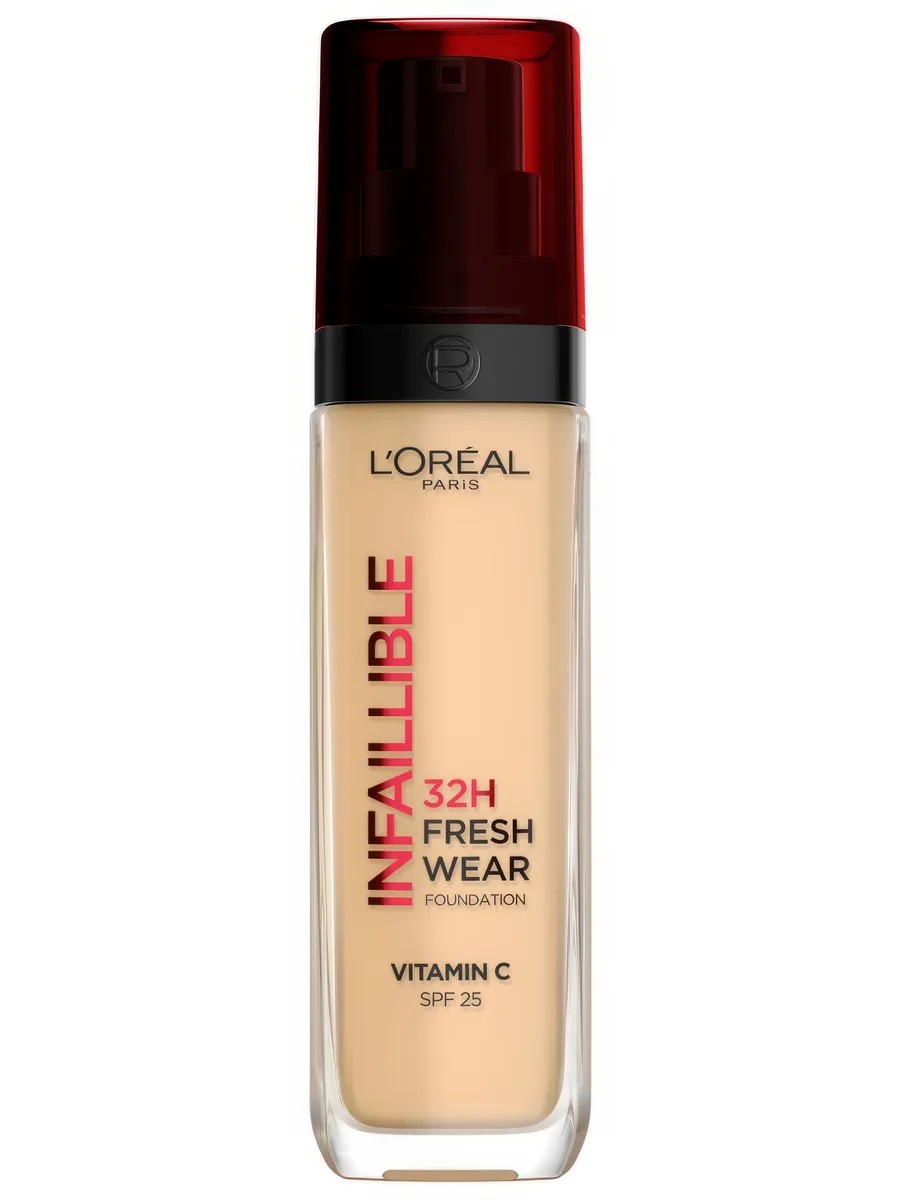 L'Oréal Paris Infaillible 32H Fresh Wear Foundation, SPF 25, Shade 125, 30 ml. The new-generation INFAILLIBLE 32H FRESH WEAR foundation provides a lightweight, long-lasting finish with UV protection. It allows skin to breathe, maintaining a lasting finish all day long. The formula contains caring ingredients: vitamin E and pearlescent pigment. More staying power, more care. Be INFAILLIBLE. Because you deserve it! How to use: Shake before use. Apply with your fingertips, spreading lightly over the entire face. For denser coverage, apply the cream with a brush. For lighter coverage, apply the foundation with a damp sponge. To set your makeup, we recommend using INFAILLIBLE mattifying powder. To correct skin imperfections, use the long-lasting, multi-functional INFAILLIBLE concealer. Composition: AQUA/WATER, DIMETHICONE, ISODODECANE, ALCOHOL DENAT., ETHYLHEXYL METHOXYCINNAMATE, TRIMETHYLSILOXYSILICATE, BUTYLENE GLYCOL, TITANIUM DIOXIDE [NANO]/TITANIUM DIOXIDE, PEG-10 DIMETHICONE, PERLITE, SYNTHETIC FLUORPHLOGOPITE, NYLON-12, ISOPROPYL LAUROYL SARCOSINATE, DIISOPROPYL SEBACATE, HDI/TRIMETHYLOL HEXYLLACTONE CROSSPOLYMER, DISTEARDIMONIUM HECTORITE, BIS-PEG/PPG-14/14 DIMETHICONE, MAGNESIUM SULFATE, ALUMINUM HYDROXIDE, PHENOXYETHANOL, DISODIUM STEAROYL GLUTAMATE, HYDROGEN DIMETHICONE, CELLULOSE, DIPENTAERYTHRITYL TETRAHYDROXYSTEARATE/TETRAISOSTEARATE, ASCORBYL GLUCOSIDE, SILICA SILYLATE, PARFUM/FRAGRANCE, CALCIUM ALUMINUM BOROSILICATE, TOCOPHEROL, SILICA, HEXYL CINNAMAL, BENZYL SALICYLATE, BHT, LINALOOL, ALPHA-ISOMETHYL IONONE, BENZYL ALCOHOL, CITRONELLOL, [+/- MAY CONTAIN CI 77891/TITANIUM DIOXIDE, CI 77491, CI 77492, CI 77499/IRON OXIDES, CI 77163/BISMUTH OXYCHLORIDE, MICA]