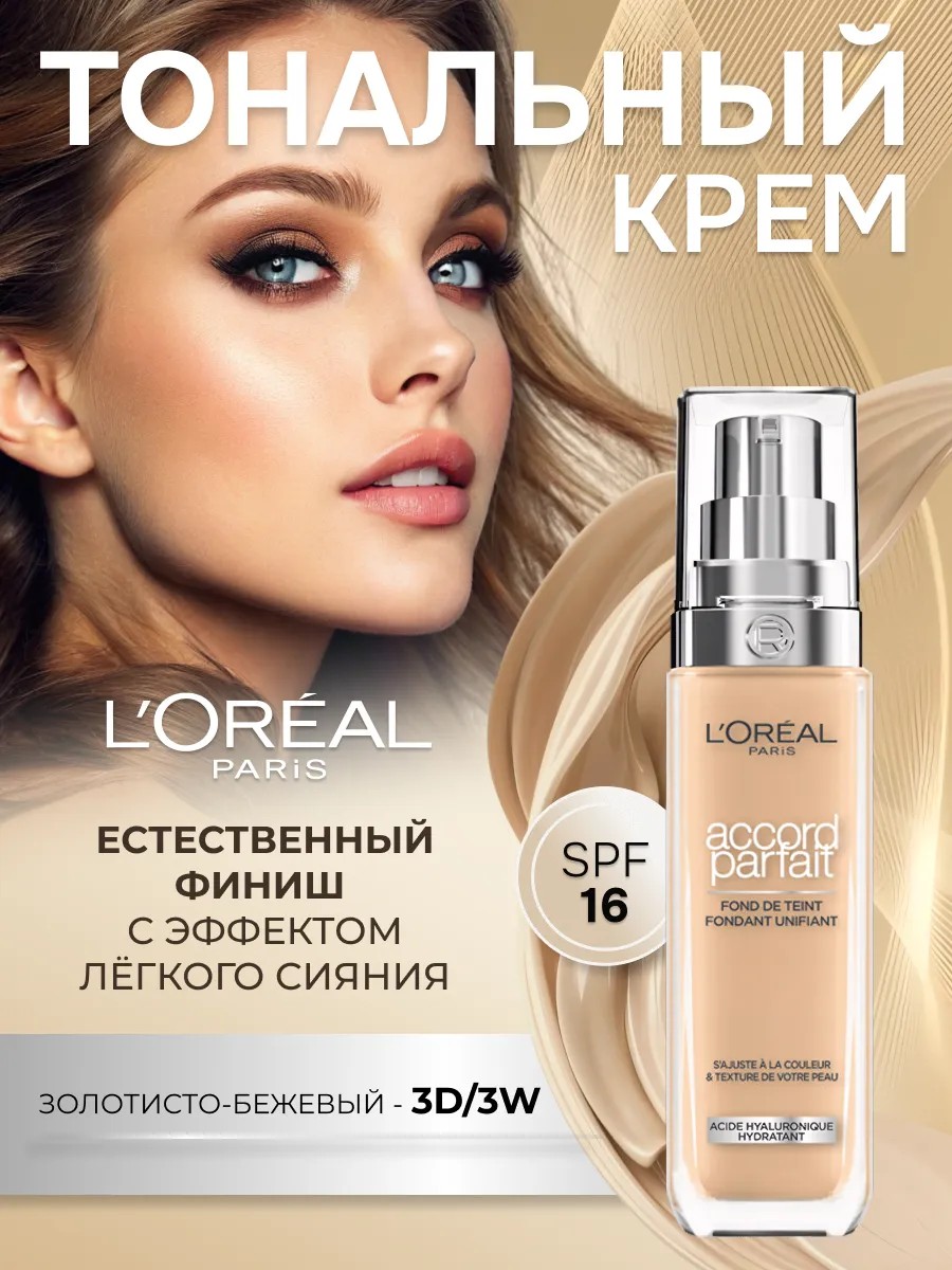 | Полное наименование товара | L'ORÉAL PARIS Тональный крем Accord Parfait, 3.D/3W |
