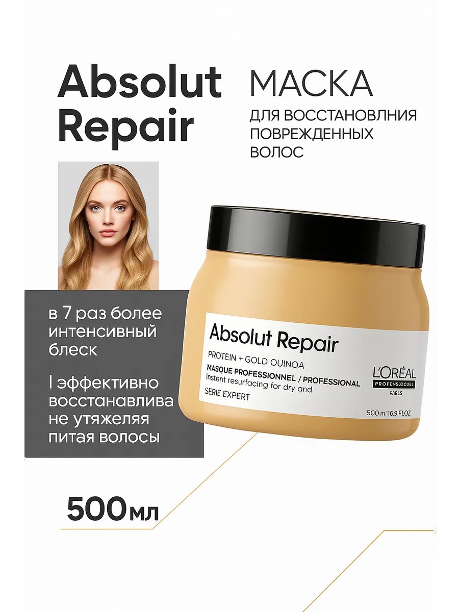 | Полное наименование товара | Маска для ухода за поврежденными волосами Absolut Repair 500 мл. от L'oreal Professionnel |