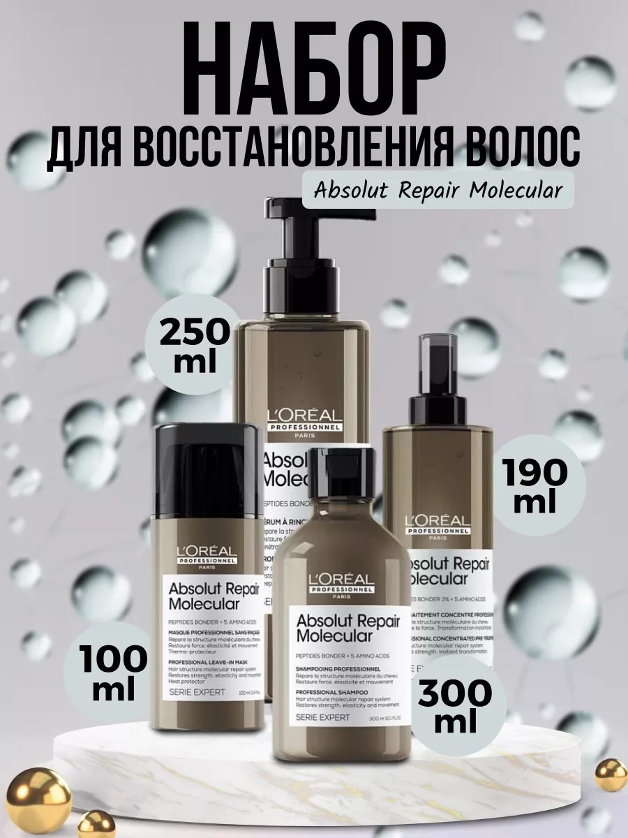 Лореаль Absolut Repair Molekular набор шампунь,пре-шампунь,сыворотка и маска обеспечивают целенаправленный уход за волосами,восстанавливая их от корней до самых кончиков.