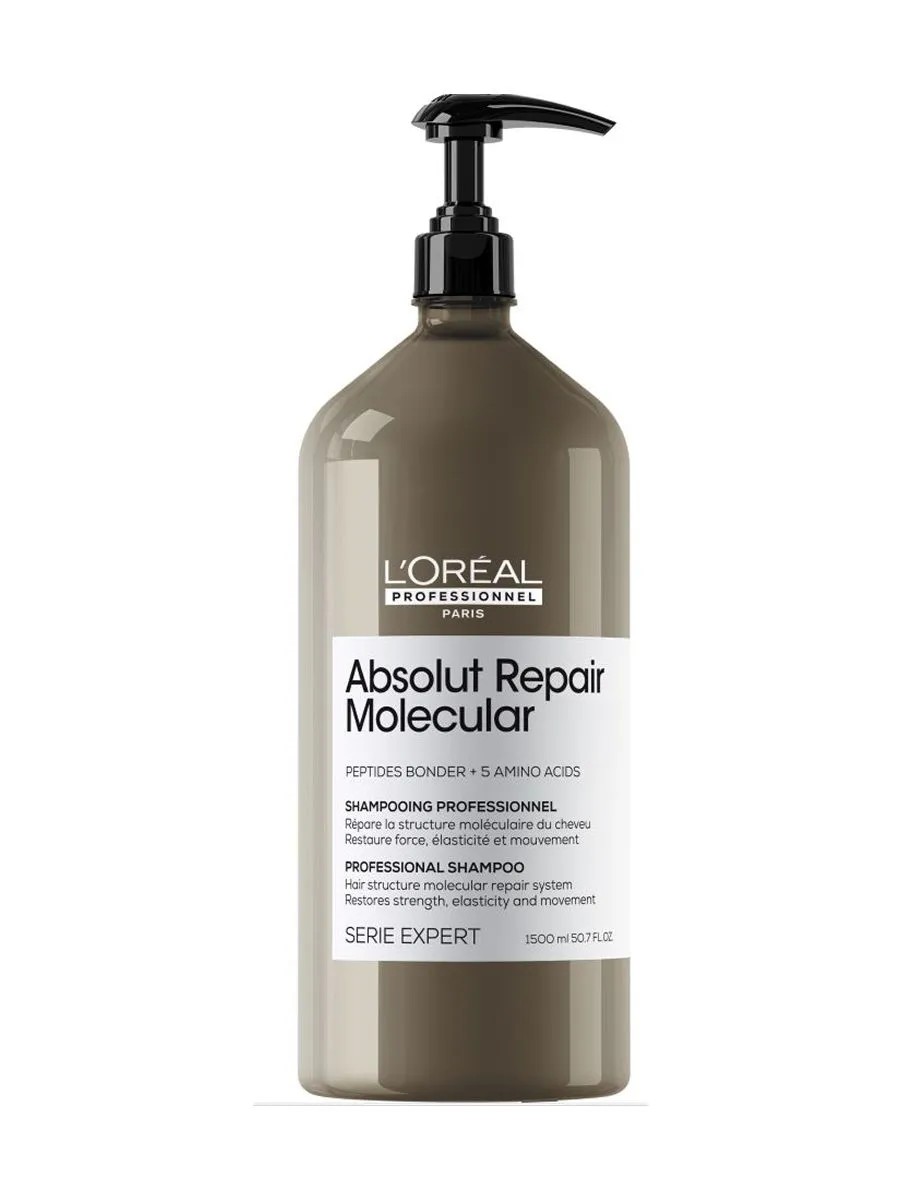 Шампунь Serie Expert Absolut Repair Molecular от L'Oreal Professionnel — это профессиональный шампунь, разработанный для глубокого восстановления и питания волос. Его роскошная текстура бережно очищает волосы, распутывая их и обеспечивая высокий уровень ухода. Шампунь для поврежденных волос глубоко питает волосы, возвращая им эластичность и подвижность. Формула шампуня, обогащенная молекулами, проникает в структуру волоса, восстанавливая его изнутри. Результат — гладкие, блестящие и послушные волосы, полные жизненной силы. Шампунь Serie Expert Absolut Repair Molecular — идеальное решение для тех, кто ищет профессиональный уход за поврежденными и ломкими волосами. Профессиональный бессульфатный шампунь Absolut Repair Molecular, содержащий концентрат пептидного бондера + 5 аминокислот, для восстановления макро-молекулярной структуры волос. Это больше чем поверхностный уход, это глубочайшее молекулярное восстановление. Чем больше волосы повреждены, тем сильнее разрушены пептидные структуры. Пептидные структуры – это мельчайшие молекулярные звенья, состоящие из пептидных связей и аминокислот.