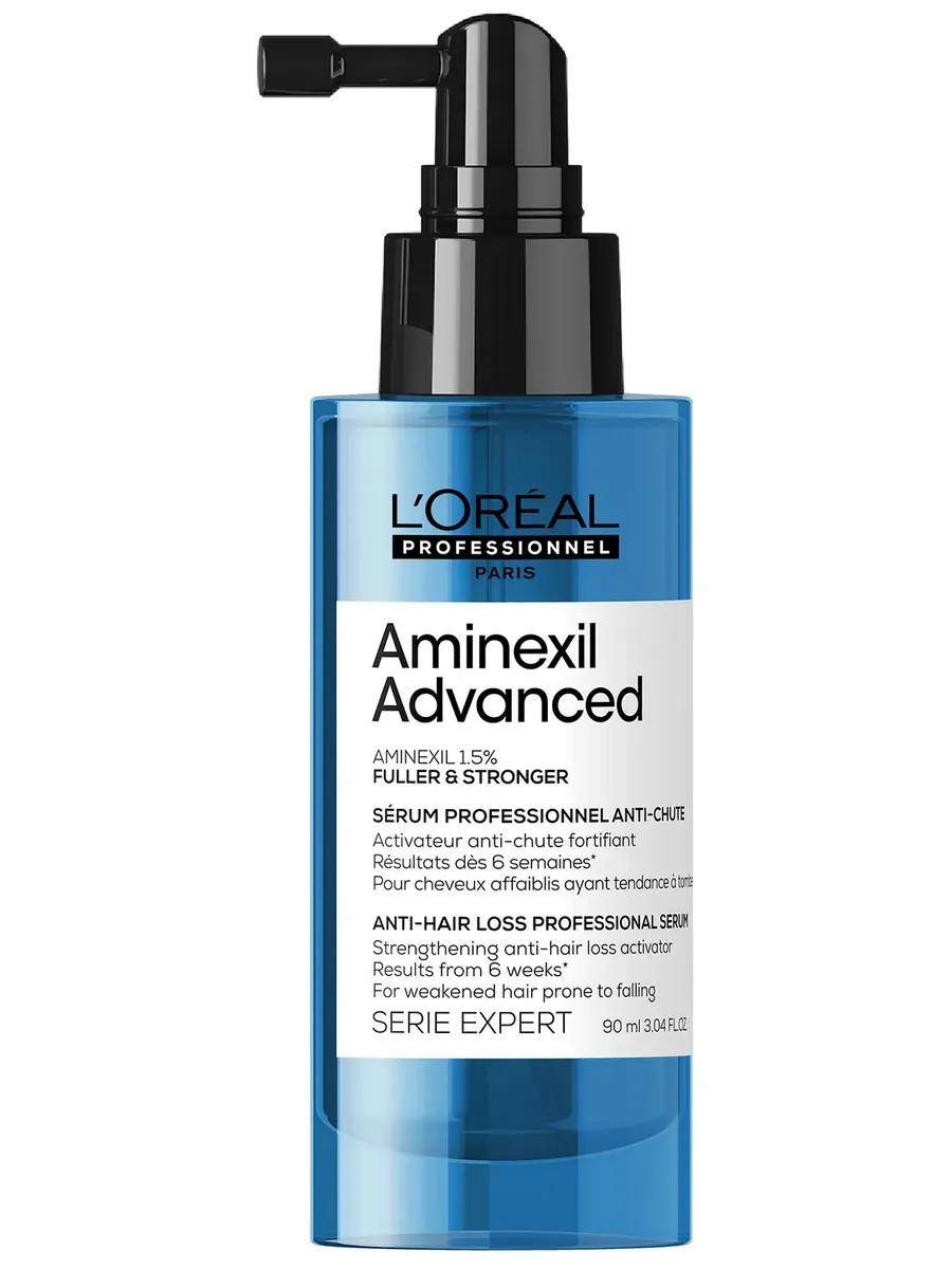 В состав формулы входит 1,5% молекулы аминексила, что позволяет сократить выпадение и укрепить волокна волос, препятствуя их ломкости. Более объёмные и сильные волосы всего за 6 недель применения* и на 87% более сильные волосы**. Не содержит красителей, силиконов и сульфатов. * Клиническое исследование с участием 130 респондентов ** Инструментальный тест после первого применения тестируемых продуктов по сравнению с обычным шампунем. Применение: распределите волосы на 4 зоны, на каждую зону распределите 5 нажатий сыворотки. Активы: аминексил - для лучшего закрепления волосяной луковицы в фолликуле и снижения уровня выпадения волос Состав: aqua / water / eau, alcohol denat., diaminopyrimidine oxide, peg-40 hydrogenated castor oil, triethanolamine, carbomer, mentha piperita oil / peppermint oil, menthol, limonene, polyquaternium-11, linalool, neohesperidin dihydrochalcone, 2-oleamido-1,3-octadecanediol, safflower glucoside, hydroxycitronellal, tocopherol, sodium citrate, parfum / fragrance.