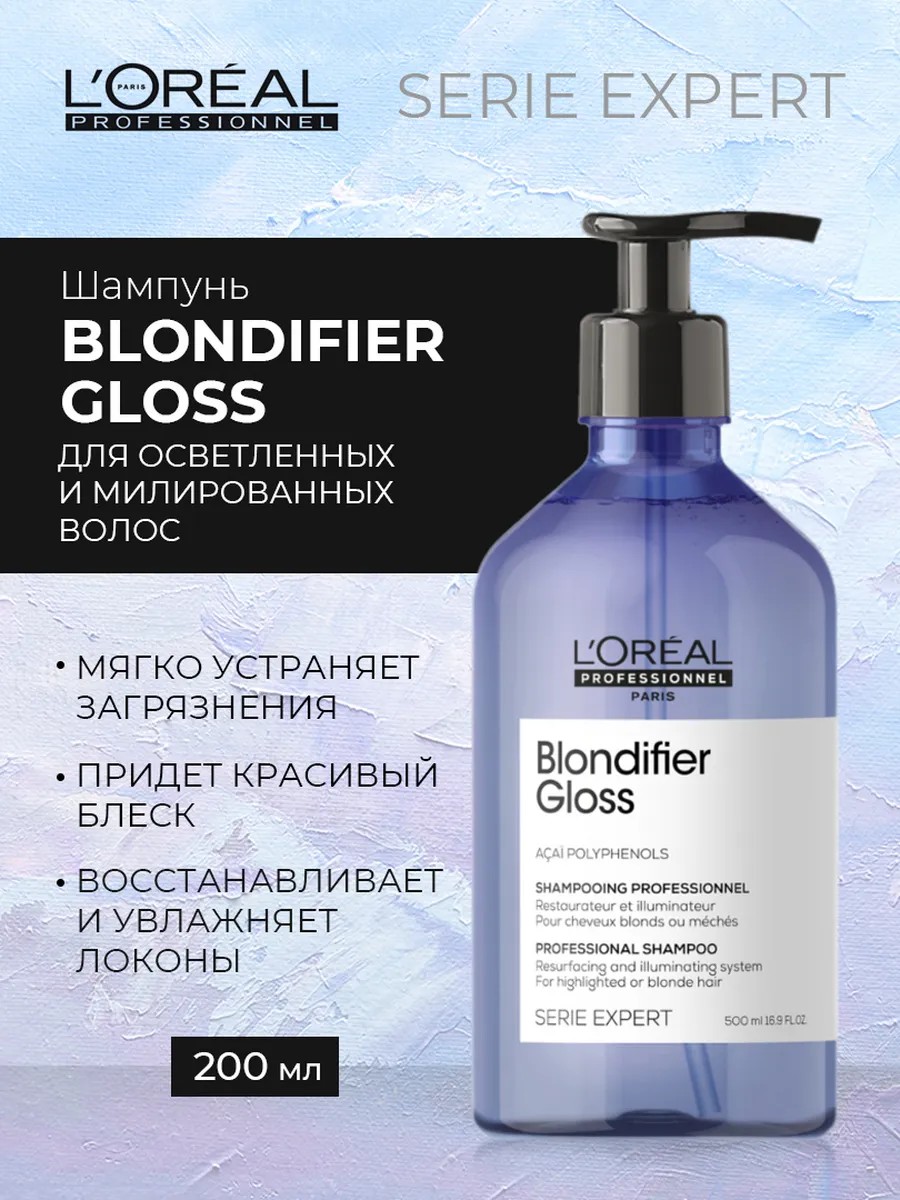 L'Oréal Professionnel Serie Expert Blondifier Gloss professional shampoo for bleached and highlighted hair gently removes impurities, adds shine, and protects color from fading.