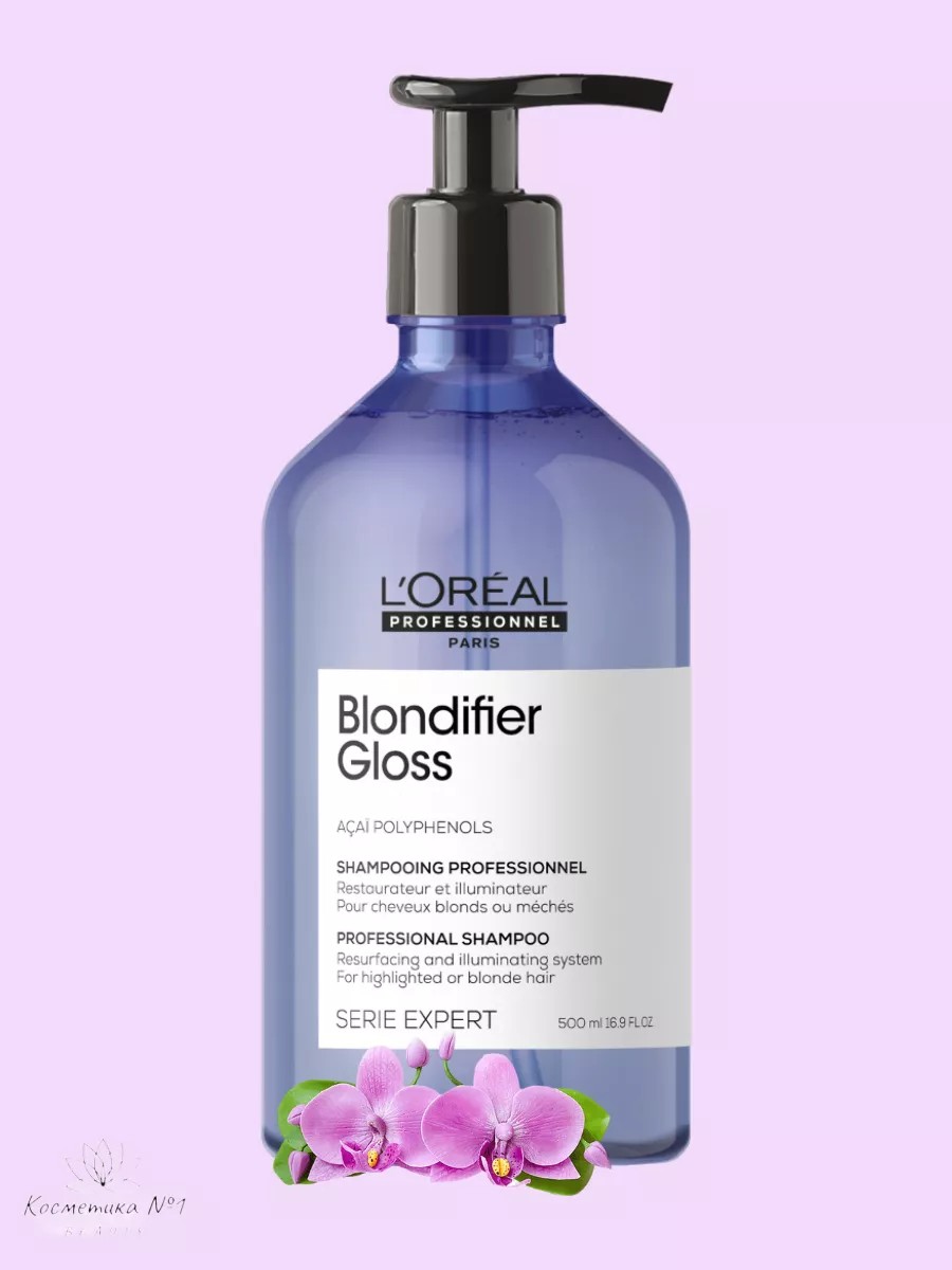 Шампунь Blondifier Gloss для осветленных волос, 500 мл. абсолютный бестселлер в уходе за окрашенными волосами. Процедура осветления часто оказывает негативное влияние на состояние прядей, они становятся тонкими и ломкими, а цвет быстро вымывается. Чтобы этого избежать, необходимо отдавать предпочтение средствам, разработанным специально для осветленных волос. Шампунь для осветленных и мелированных волос Blondifier мягко устраняет загрязнения, придавая красивый блеск. Полифенолы из ягод асаи в составе средства, увлажняют и восстанавливают локоны. Шампунь l'oreal professionnel blondifier идеален для чувствительных волос после процедуры окрашивания: не пересушивает, смягчает и защищает от ломкости. Шампунь против желтизны предназначен для регулярного ухода за сухими, изможденными и поврежденными волосами. Он увлажняет, питает и смягчает волосы, обогащает их комплексом витаминов и микроэлементов, делает локоны чистыми, свежими, эластичными и послушными. С первого использования залечиваются секущиеся кончики, волосы становятся более гладкими, приобретают здоровый вид и живой блеск. Очищающий шампунь для окрашенных светлый волос эффективно удаляет загрязнения и токсины с волосяных фолликул, не нарушая оптимальную среду кожи головы. Профессиональное средство укрепит волосы и усилит их структуру. Этот питательный шампунь удаляет загрязнения, излишний себум с кожи головы и волос. Инновационная формула способствует увлажнению сухих волос, делая их густыми и более объемными. После применения волосы становятся легкими, объемными и блестящими. Продукт подходит как для профессионального применения в салоне, так и в домашних условиях. Чтобы добиться максимального эффекта от использования, стилисты рекомендуют пользоваться всей линейкой.