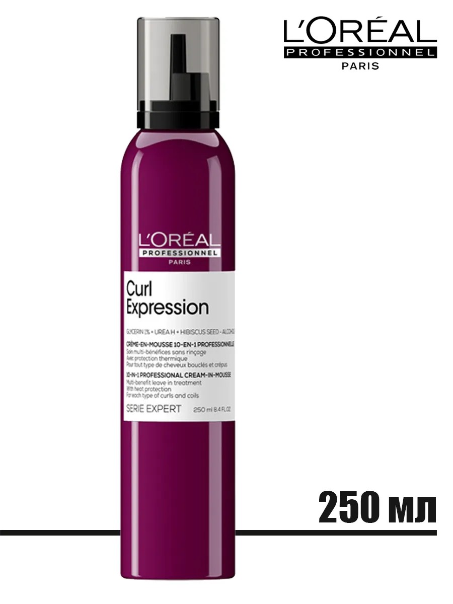 Professional 10-in-1 cream-mousse with thermal protection Curl Expression for all types of curly hair 250 ml. Professional leave-in care cream-mousse 10-in-1 Curl Expression for any type of curly hair and curls. The formula is enriched with Glycerin, Urea AS and Hibiscus seed extract, does not contain alcohol, has 10 benefits: 1- hydration, 2- curl definition, 3- strength, 4- protection from humidity, 5- thermal protection up to 230 °C/450℉, 6- smoothness, 7- ease of application, 8- softness, 9- protection from deformation, 10- multifunctionality in styling. Without ethyl alcohol. Instrumental test. Application: Apply, starting from the ends to the lengths, with squeezing movements. Then apply a drying accelerator spray for quick drying. For wavy hair: Apply to dry hair for quick styling, or after a moisturizing cream-gel or after a curl-defining cream-gel. For curly hair: Apply after a moisturizing cream-gel. Directions for use and application in Russian: Apply, starting from the ends to the lengths, using squeezing movements. Then apply a drying accelerator spray for quick drying. For wavy hair: Apply to dry hair for quick styling, or after a moisturizing cream-gel or after a curl-defining cream-gel. For curly hair: Apply after a moisturizing cream-gel. Curls, wavy hair, curls, fluff, moisturizing, afro hair, kinky hair, curls, ringlets, waves, curlers, perm, perm, wave.