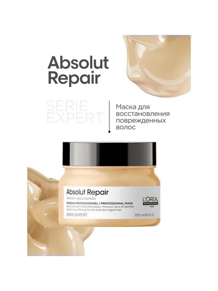 Частые проблемы в уходе за волосами - ломкость и отсутствие здорового блеска в результате различных повреждений: брашинг, выпрямление волос, окрашивание. Чтобы обеспечить волосам необходимое питание, используйте нашу маску с кремовой текстурой. Экстракт зерен золотого киноа и пшеничный протеин в составе восстанавливают волосы, делая их более сильными и блестящими. Маска идеально подходит для ухода как за натуральными, так и за окрашенными волосами. Способ применения: После использования шампуня Absolut Repair нанесите на подсушенные полотенцем волосы. Оставьте на 3-5 минут. Тщательно смойте. В случае попадания в глаза немедленно промойте их водой.