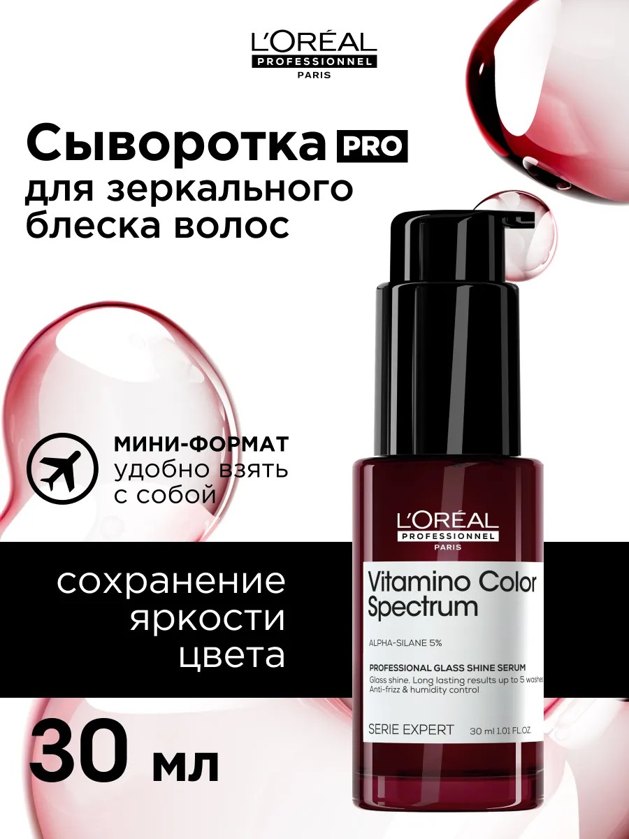 Мини сыворотка Vitamino Color Spectrum для зеркального блеска и защиты цвета окрашенных волос. Эффект сыворотки сохраняется до 10 использований шампуня*. В формуле содержится 5% альфа-силана – мощного компонента, активирующегося под воздействием тепла. Альфа-силан создает вокруг волоса невидимый защитный барьер, который противостоит воздействию влажности (до 80%*), создавая эффект анти-фризз, защищает от высоких температур (до 230°C*) и УФ лучей*, а также обеспечивает разглаживающий эффект. Аромат с неповторимой фруктовой композицией, навеянный изысканными парфюмами, остается на волосах приятным шлейфом. Подходит для всех типов окрашенных волос. Почувствуйте силу профессионального** салонного ухода Vitamino Color Spectrum и наслаждайтесь ослепительным блеском и защитой цвета ваших волос каждый день. *Инструментальный тест **Для салонов красоты и домашнего использования.