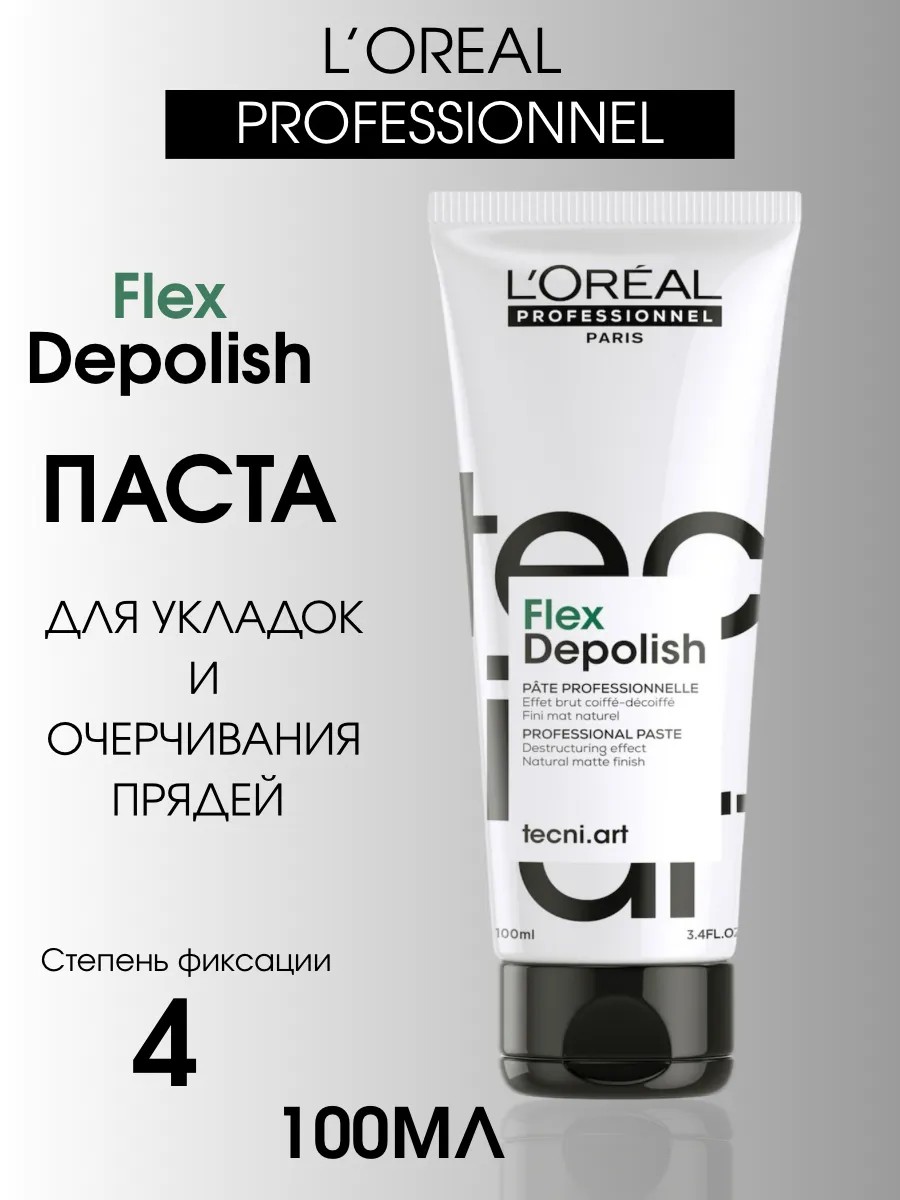 Паста L’Oreal Professionnel Depolish - это профессиональный продукт для стайлинга и укладки волос. Она обеспечивает сильную фиксацию, идеально подходящую для создания небрежной укладки.