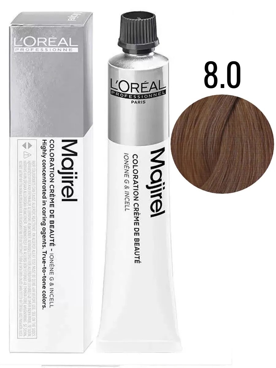 L'Oreal Professionnel Majirel стойкая крем-краска для волос, 8.0 светлый блондин глубокий, 50 мл.