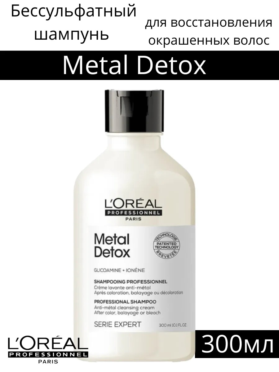 For maximum effectiveness, we recommend using it with a hair mask and leave-in treatment to provide complete and comprehensive care for color-treated, dull, and damaged hair. Let Metal Detox shampoo become your indispensable assistant in caring for your hair and restoring its beauty and health. Improve your look and give your hair the professional, intensive care and protection it deserves. Directions: Apply L'Oréal shampoo evenly to damp hair. Lather. Rinse thoroughly. In case of contact with eyes, rinse immediately with water.