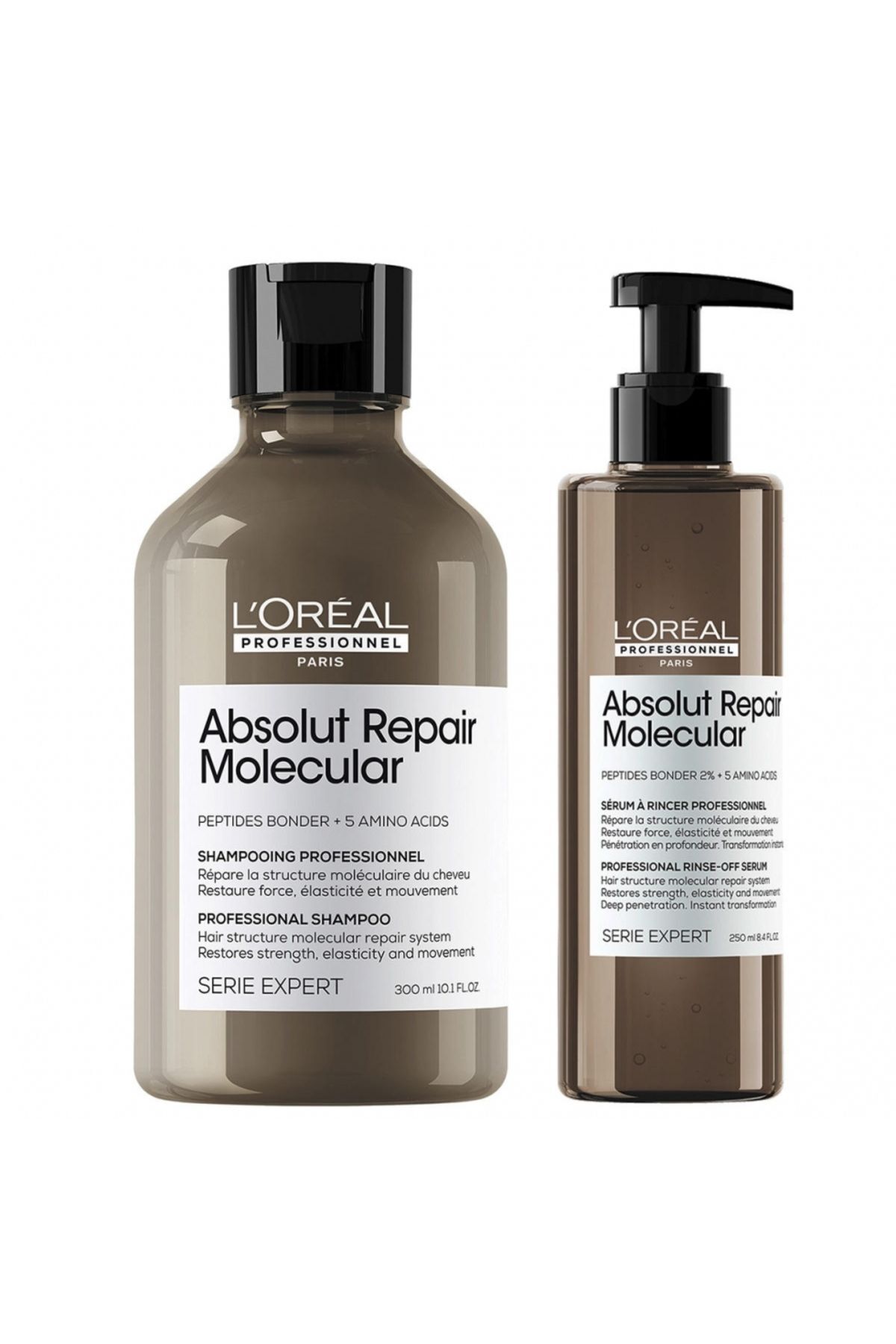 Concentrated professional rinse-off serum containing 2 peptide binder 5 a,mino acids to repair the molecular structure of the hair. It goes beyond surface repair and strengthens the hair fiber from the inside, at a molecular level. Inspired by ultra-powerful skincare serums, it penetrates deeply into the hair fiber to re-strengthen it at a molecular level. It restores elasticity and mobility . It instantly and visibly transforms hair: It significantly increases shine and smoothness.