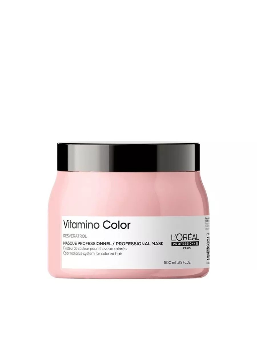 L'OREAL PROFESSIONNEL Mask for Colored Hair 500 ml Mask Serie Expert Vitamino Color The mask provides an immediate effect: in just 1 minute, it nourishes hair, makes it stronger and softer, and enhances shine. Protects the color of colored hair from fading. Active ingredients: Resveratrol, a natural antioxidant from grapes, protects pigment from fading. The result is long-lasting color for up to 8 weeks after coloring. Renovation of the Serie Expert range. Now all products are in even more environmentally friendly packaging, which is 100%* made of recycled plastic. *Excluding cap and label.