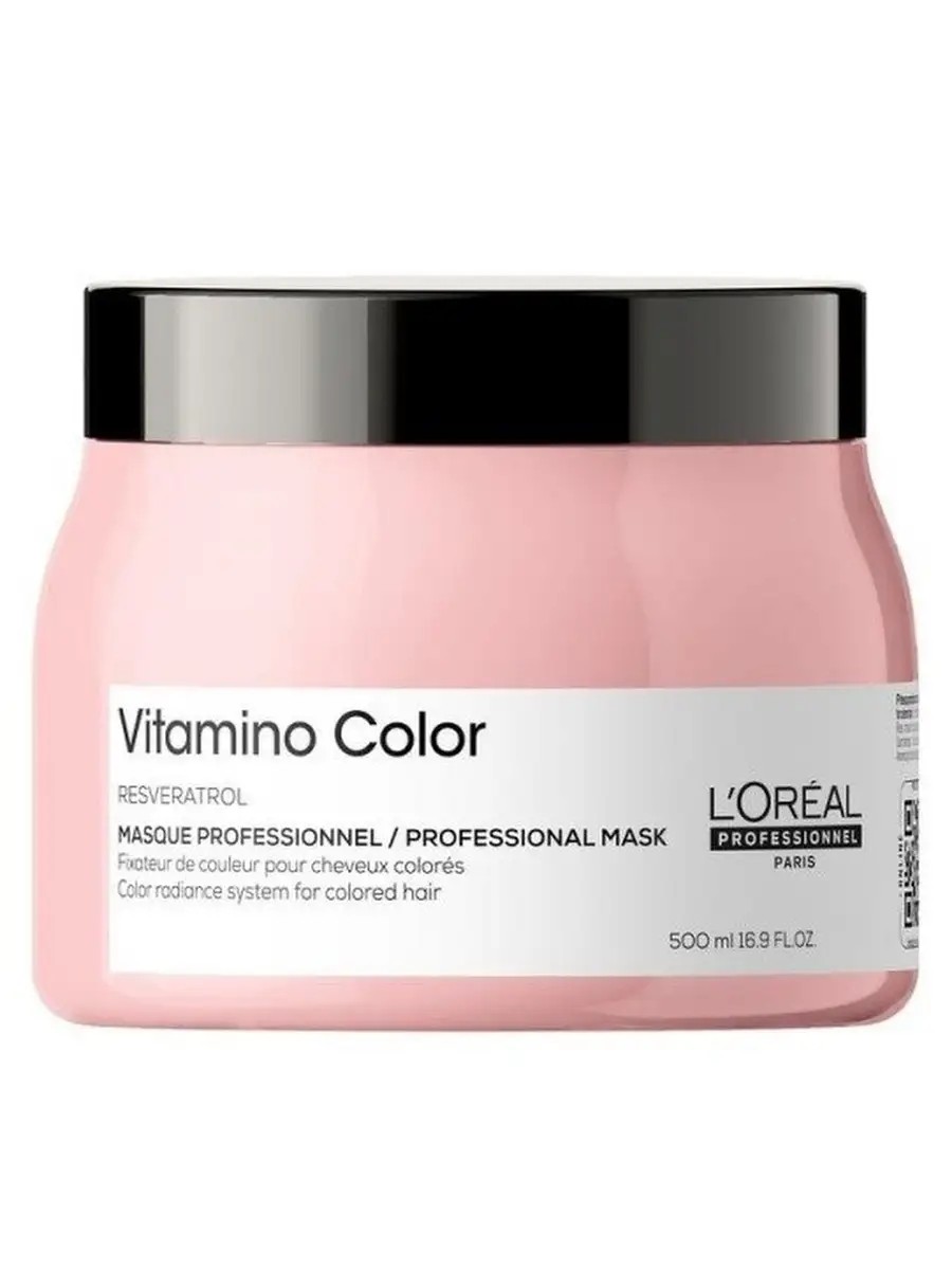 Maximum volume of 500 ml. for your convenience and savings (for home and salons)VITAMINO COLOR: COLOR PROTECTION FOR COLORED HAIR (UP TO 8 WEEKS OF COLOR PROTECTION)The Vitamino Color mask is an absolute bestseller in the care of colored hair. In just a couple of minutes, it nourishes hair, makes it stronger and softer, and enhances shine. Resveratrol, a natural antioxidant from grapes, protects the pigment from washing out, and the hair - from external damage. The result is long-lasting color for up to 8 weeks after coloring. Directions: Apply to freshly washed with Vitamino Color shampoo and towel-dried hair. Leave on for 1 minute. Rinse thoroughly. In case of contact with eyes, rinse immediately with water. All Serie Expert products are now packaged 100 percent made of recyclable plastic, with the exception of the cap and label. L'Oréal Professionnel has been caring for the beauty of women's hair for 110 years: created in Paris, the brand is the embodiment of French elegance.