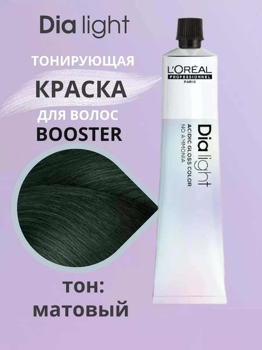 Loreal Краска тонирующая без аммиака Dia Light бустер Матовый, 50 мл. Краситель тон в тон на основе кислого pH, предназначенный специально для окрашенных и чувствительных волос. Без запаха. Кислый pH формулы без аммиака позволяет избежать осветления, поэтому прекрасно тонирует. Формула Dia Light, благодаря специально подобранному полимеру, умеет адаптироваться к чувствительности волокна волоса: чем более чувствительным, осветлённым является волос, тем лучше в этих зонах проявляются красящие вещества, позволяя получить оптимальную однородность цвета по всей длине волоса, не вызывая перегрузки цвета. Это краситель нового поколения, который бережно ухаживает за волосами. Он идеален для женщин с поврежденными и чувствительными волосами после многочисленных окрашиваний, создания прядей, перманентной завивки или выпрямления волос. Краска без аммиака L'oreal Professionnel Dia Light придает волосам более натуральный, естественный оттенок, структура волос в процессе окрашивания не нарушается, локоны сияют здоровьем и блеском! Идеально подходит для окрашенных, осветленных или чувствительных волос. Идеален для освежения, обогащения и коррекции цвета. Придает волосам виниловый блеск и сияние. Используется в услуге DIA Ламинирование. Не осветляет волосы. Не предназначен для окрашивания седых волос.