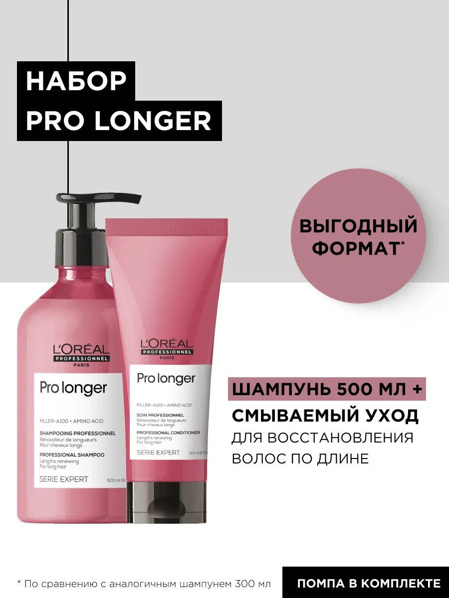 Вы мечтаете о длинных роскошных локонах, однако в реальности они всё сильнее и чаще секутся? Гамма Pro Longer, состоящая из профессионального шампуня Pro Longer, 500мл, и профессионального бальзама для волос Pro Longer, 200 мл,— идеальный выбор для тех, кто хочет распрощаться с вынужденными стрижками!