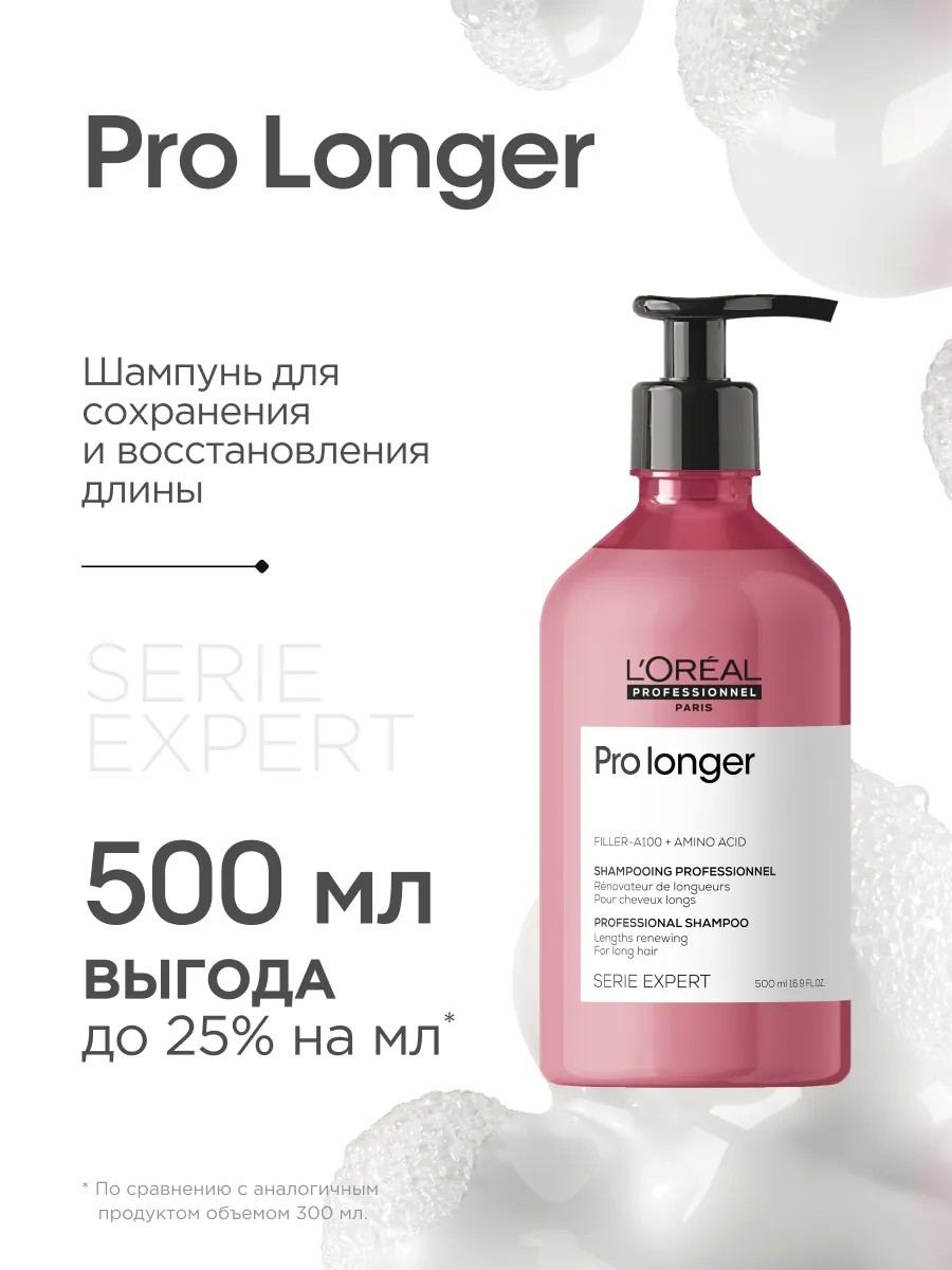 Восстанавливающий шампунь L'Oreal Professionnel Pro Longer (Про Лонгер) разработан специально для девушек, которые мечтают о красивых и длинных волосах. Профессиональная формула направлена на глубокое восстановление и укрепление очень сухих и сильно поврежденных, ломких волос по всей длине. Запатентованная технология Филлер-A100 объединяет два активных компонента: филоксан и поликватерниум PQ6. Они интенсивно уплотняют пористые волосы, придают им силу, блеск и увеличение устойчивости волос к механическому воздействию и к повреждениям.