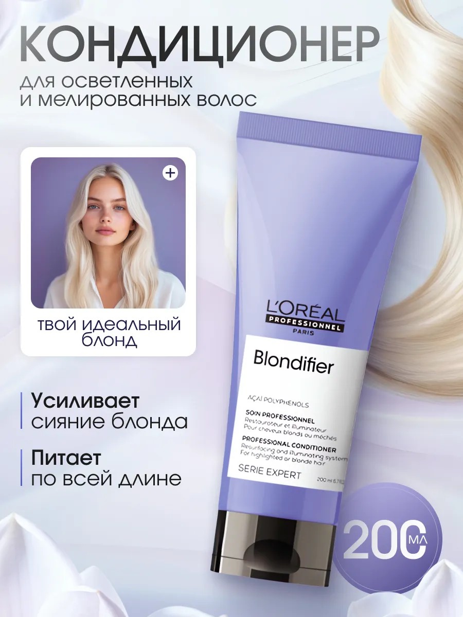 Профессиональный кондиционер L'Oreal Professionnel Serie Expert Blondifier Gloss для сияния осветленных и мелированных волос деликатно устраняет загрязнения, придает блеск и защищает цвет от вымывания.