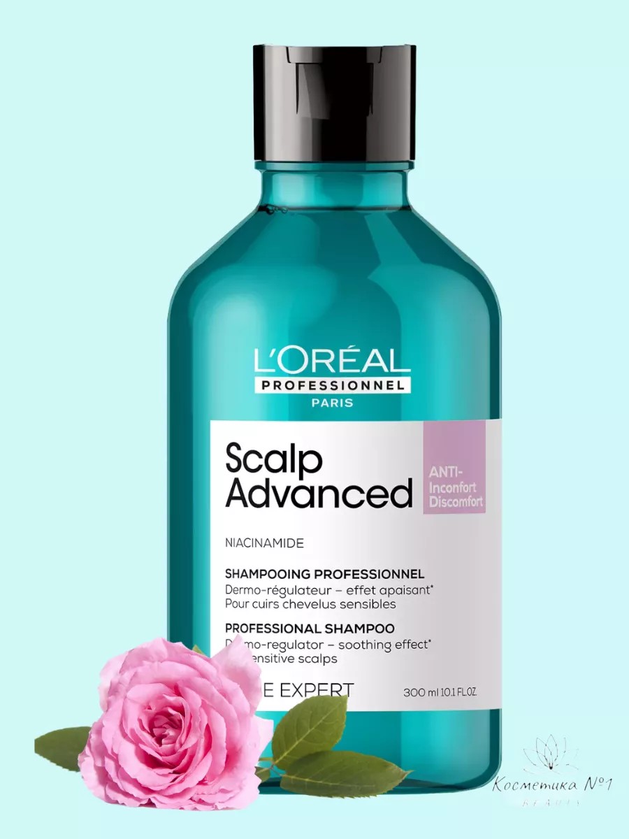 Шампунь для чувствительной кожи головы от L'Oreal Professionnel Scalp Advanced, 300 мл. придаст вашим волосам мягкость, блеск и увлажнение. Легкая гелевая текстура мягко очищает, успокаивая чувствительную кожу головы. Шампунь обогащен ниацинамидом и экстрактом синих водорослей. Профессиональное средство подходит для всех типов волос и кожи головы, склонной к повышенной чувствительности. Эффективно снимает чувство жжения, зуда и покалывания, возвращает ощущение комфорта, снижает чувство стянутости кожи головы. Шампунь профессиональный предназначен для регулярного ухода за сухими, изможденными и поврежденными волосами. Он увлажняет, питает и смягчает волосы, обогащает их комплексом витаминов и микроэлементов, делает локоны чистыми, свежими, эластичными и послушными. Шампунь Scalp Advanced (Скальп Эвансед) для мытья головы хорошо подходит окрашенным волосам: благодаря бережному воздействию искусственный пигмент сохраняется в структуре локонов, что позволяет цвету держаться дольше. Эффективен против перхоти и борется с жирностью, делая ваши волосы здоровыми и блестящими. Благодаря уникальной формуле, этот шампунь l'oreal профессиональный и помогает бережно очистить кожу головы, не вызывая раздражения или сухости. Помимо этого, l'Oreal professionnel предлагает также маску для волос из линейки Scalp Advanced, которая дополнит уход за вашими волосами и придаст им дополнительный объем и сияние. Состав не вызывает аллергических реакций, раздражений и шелушений, имеет комфортную и экономичную в применении консистенцию, без силиконов и спирта, приятный ненавязчивый аромат, который остается нежным шлейфом на волосах или коже на несколько часов.