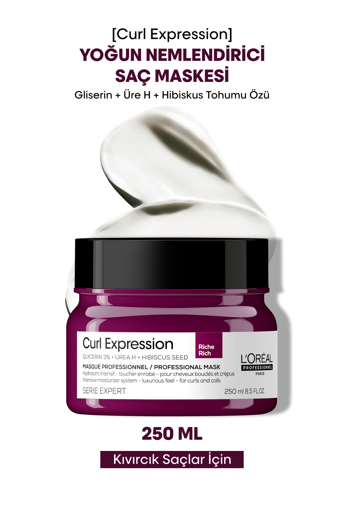 Serie Expert Curl Expression Intensive Moisturizing Mask for Curly Hair 250 mlIntensive moisturizing professional mask for a natural feel. Enriched with glycerin, Urea H and Hibiscus Seed extract, this formula intensively moisturizes curls and coils for a wavy result and prepares them for easy combing. It gives the hair an instant soft, supple and light feel. Apply to towel-dried hair after shampooing. Leave on for 10 minutes. Rinse thoroughly. In case of contact with eyes, rinse immediately and thoroughly