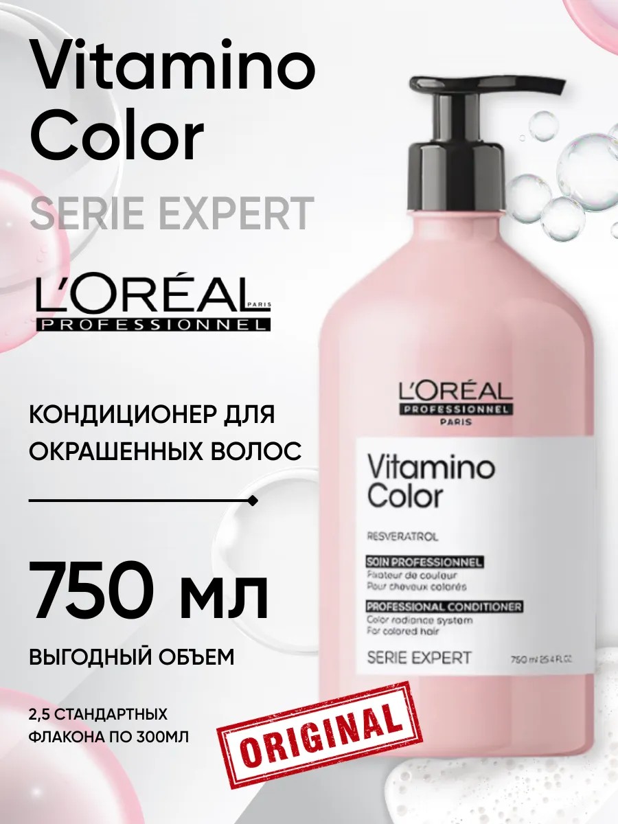 Профессиональный смываемый уход L'Oreal Professionnel Serie Expert Vitamino Color для окрашенных волос.