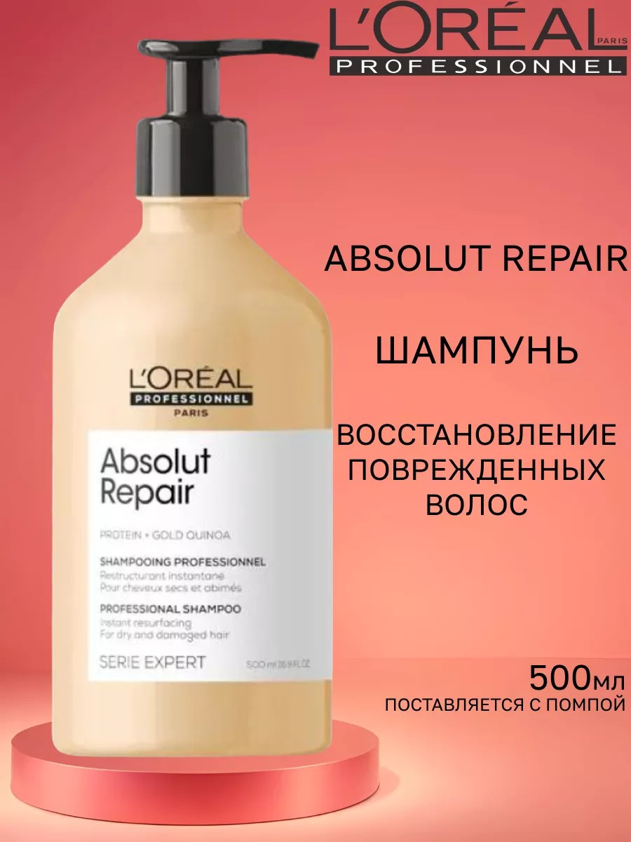 L'Oreal Professionnel Serie Expert Absolut Repair Шампунь для восстановления поврежденных волос. Абсолютный бестселлер в уходе за поврежденными волосами - шампунь Absolut Repair. Шампунь женский мягко очищает поврежденные волосы, не пересушивая их в процессе мытья. Шампунь от повреждения волос абсолютно не утяжеляет волосы, делает их более эластичными, придает блеск и обладает роскошным чувственным ароматом. Экстракт зерен золотого киноа и пшеничный протеин обеспечивают интенсивное восстановление, укрепляют и защищают волос от дальнейших повреждений.Как использовать:Равномерно нанесите на кожу головы, вспеньте и тщательно смойте. Повторите процедуру при необходимости. В случае попадания в глаза немедленно промойте их водой. Активные компоненты: Экстракт зерен золотого киноа, пшеничный протеин. Все шампуни L'Oreal Professionnel Serie Expert объемом 1 500 мл продаются без помпы. Цвет крышки может отличаться в зависимости от партии. Никакая доп.упаковка и защитные мембраны производителем не предусмотрены. подарок