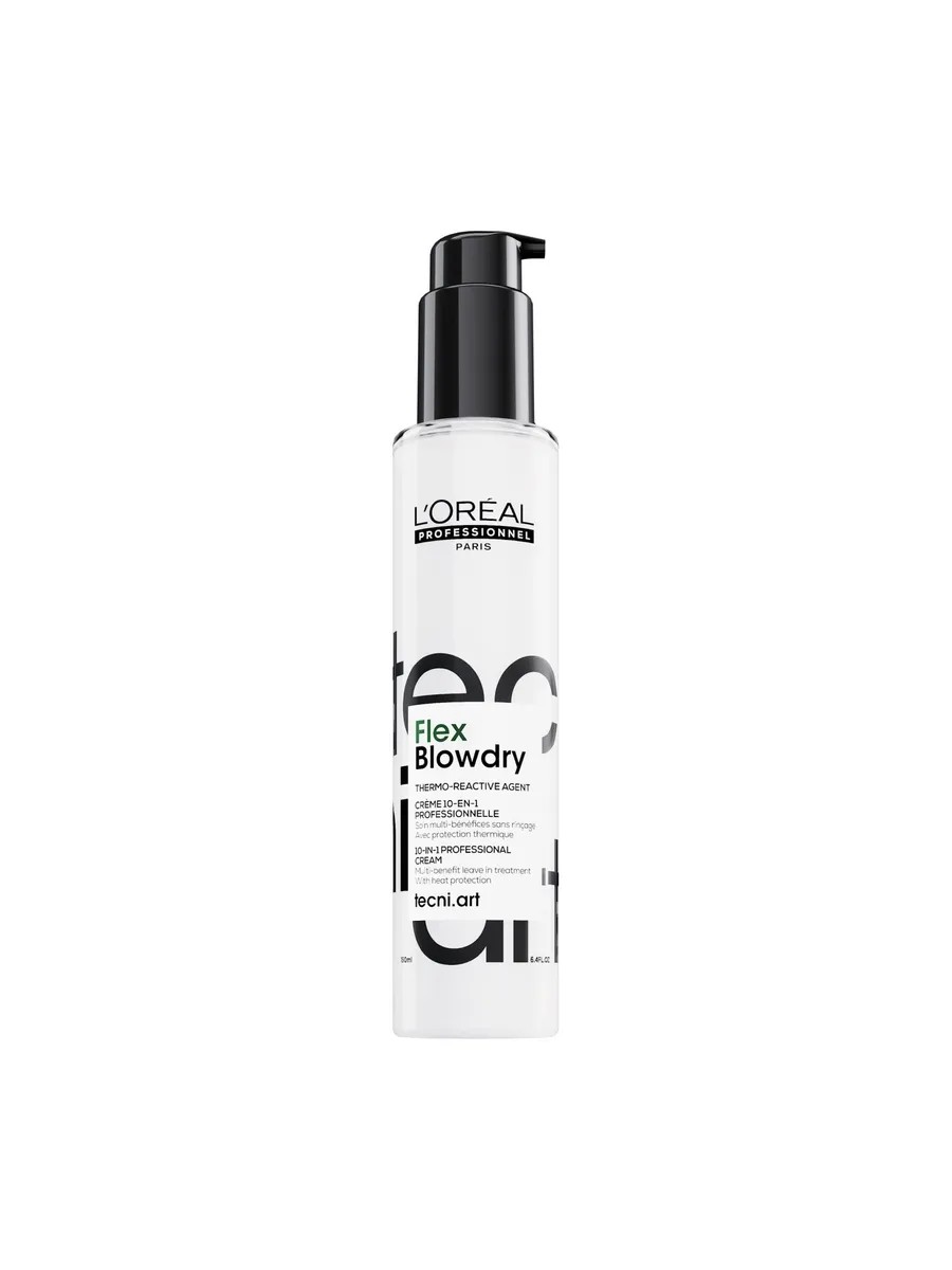 L'oreal Professionnele Blow-dry Thermal Protective Cream with Style Memory Effect, 150 ml. Blowdry Fluidifier works as both care and styling product—no more using multiple products! It gently prepares hair for styling, providing nourishing care and protecting against breakage thanks to plant proteins and vitamin E. Thermo-active wax envelops the hair and fixes the desired shape, literally melting under the next temperature. If your hairstyle doesn't turn out right, you can try again. The product has a memory effect: if your hairstyle gets creased under a hat or while you sleep, it will be easier to restore it to its original shape. How to use: Apply 3-5 pumps to towel-dried hair, from roots to ends. Then proceed to blow-dry. All Serie Expert products are now packaged with 100 percent recyclable plastic, with the exception of the cap and label.