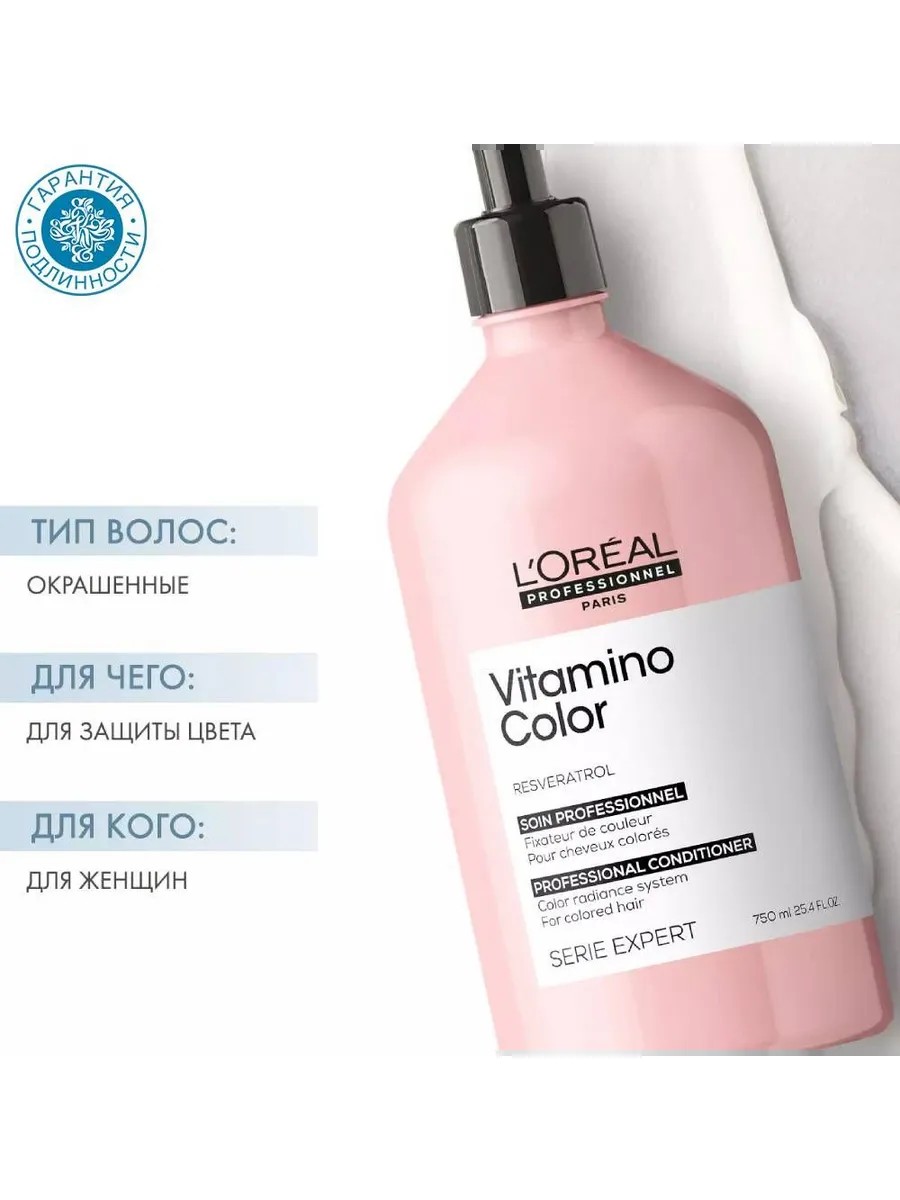 Продлить эффект салонного окрашивания возможно с помощью правильно подобранного домашнего ухода. Кондиционер Vitamino придает окрашенным волосам роскошный блеск и мягкость, облегчая расчесывание и предотвращая спутанность.Его легкая текстура не утяжеляет волосы, а специальная формула поддерживает насыщенность цвета. Ресвератрол - натуральный антиоксидант из ягод винограда, защищает пигмент от вымывания. Результат — стойкий цвет до 8 недель после окрашивания. Теперь упаковка всех средств Serie Expert на 100% состоит из перерабатываемого пластика, за исключением крышки и этикетки.L’Oreal Professionnel уже 110 лет заботится о красоте женских волос: созданный в Париже, бренд является воплощением французскойэлегантности.