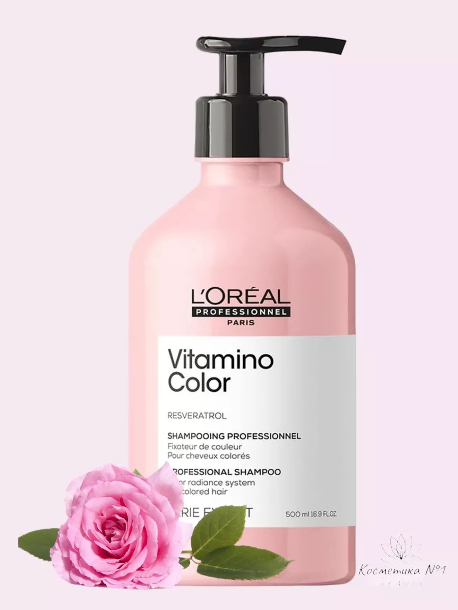 Vitamino Color Shampoo - от L'Oreal Professionnel Шампунь фиксатор цвета 500 мл. деликатно очищает окрашенные волосы, поддерживает яркость и блеск. Стойкость и насыщенность цвета после окрашивания во многом зависит от дальнейшего домашнего или салонного ухода. Профессиональный шампунь для девушек и женщин Vitamino Color (Витамино Колор) с ароматом малины и красных ягод создан для защиты и сохранения цвета окрашенных, мелированных и осветленных волос. Средство защищает структуру волос от внешних повреждений, не пересушивая и не утяжеляя их. Мягкая формула с Ресвератролом - натуральным антиоксидантом из ягод винограда, препятствует вымыванию пигмента. Результат - стойкий цвет до 8 недель после окрашивания. L'Oreal Шампунь профессиональный предназначен для регулярного ухода за окрашенными волосами. Он увлажняет, питает и смягчает волосы, обогащает их комплексом витаминов и микроэлементов, делает локоны чистыми, свежими, эластичными и послушными. С первого использования залечиваются секущиеся кончики, волосы становятся более гладкими, приобретают здоровый вид и живой блеск. Профессиональное средство укрепит волосы и усилит их структуру. Этот питательный шампунь удаляет загрязнения, излишний себум с кожи головы и волос. loreal Vitamino Color подходит как для профессионального применения в салоне, так и в домашних условиях. Чтобы добиться максимального эффекта от использования, стилисты рекомендуют пользоваться всей линейкой. Состав не вызывает аллергических реакций, раздражений и шелушений, имеет комфортную и экономичную в применении консистенцию, приятный ненавязчивый аромат, который остается нежным шлейфом на волосах или коже на несколько часов. Способ применения: нанесите на влажные волосы, вспеньте и смойте. При попадании в глаза промойте их водой. Используйте совместно со смываемым уходом Витамино Колор. Флакон шампуня оснащен специальным дозатором. для удобного использования.