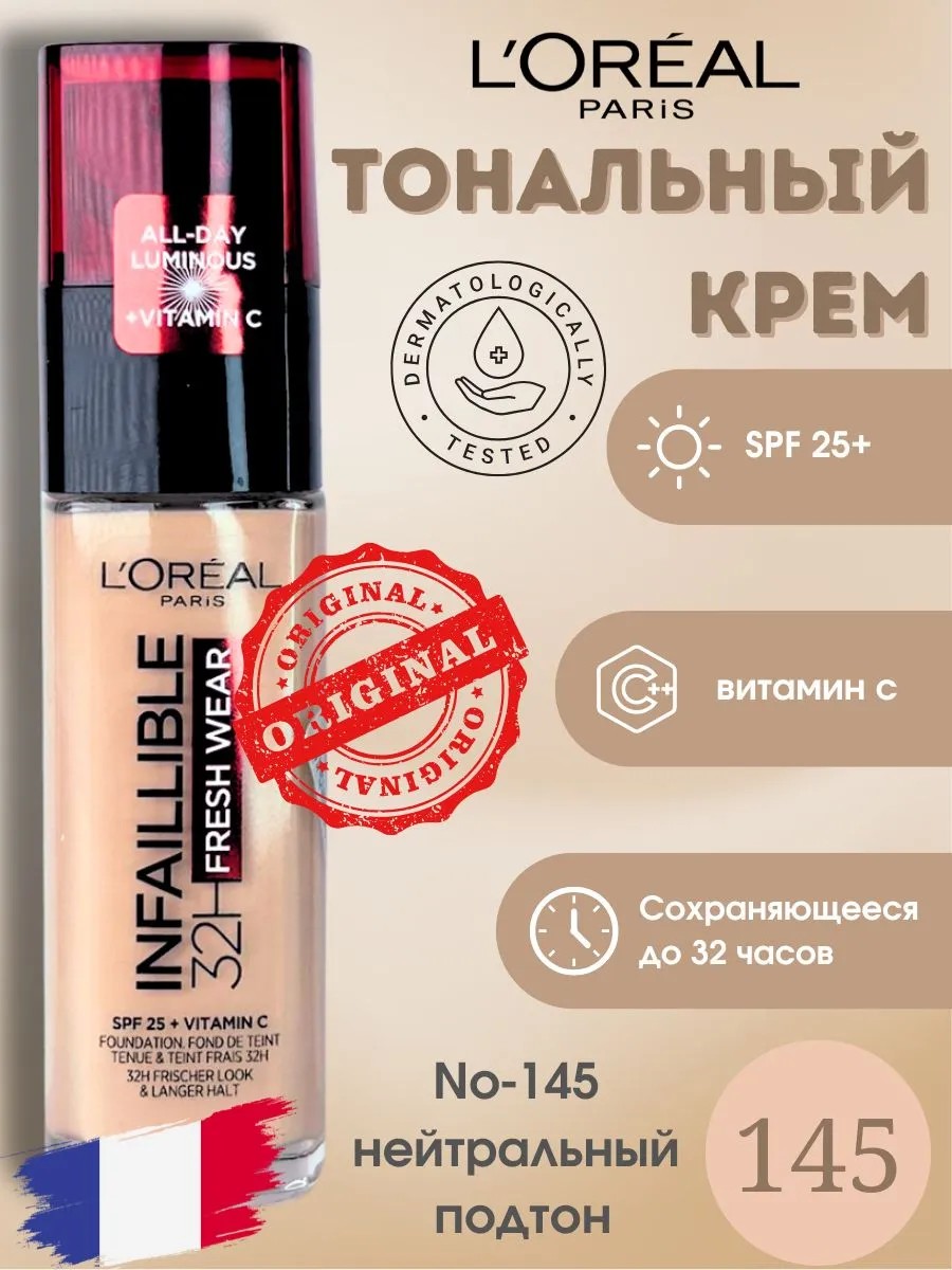 Тональный Крем L'Oreal Paris Infaillible No145 (32H) — это ваш незаменимый спутник для макияжа, который будет стойким и свежим в любых условиях.