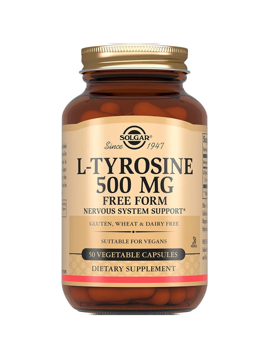 Дополнительный прием тирозина положительно влияет на общее самочувствие и настроение, позволяет снизить чувство тревоги и усталости, а также повысить физическую выносливость при спортивных нагрузках.При производстве своей продукции компания Solgar использует только биоактивную свободную форму аминокислот, а именно изомер L-тирозина.
