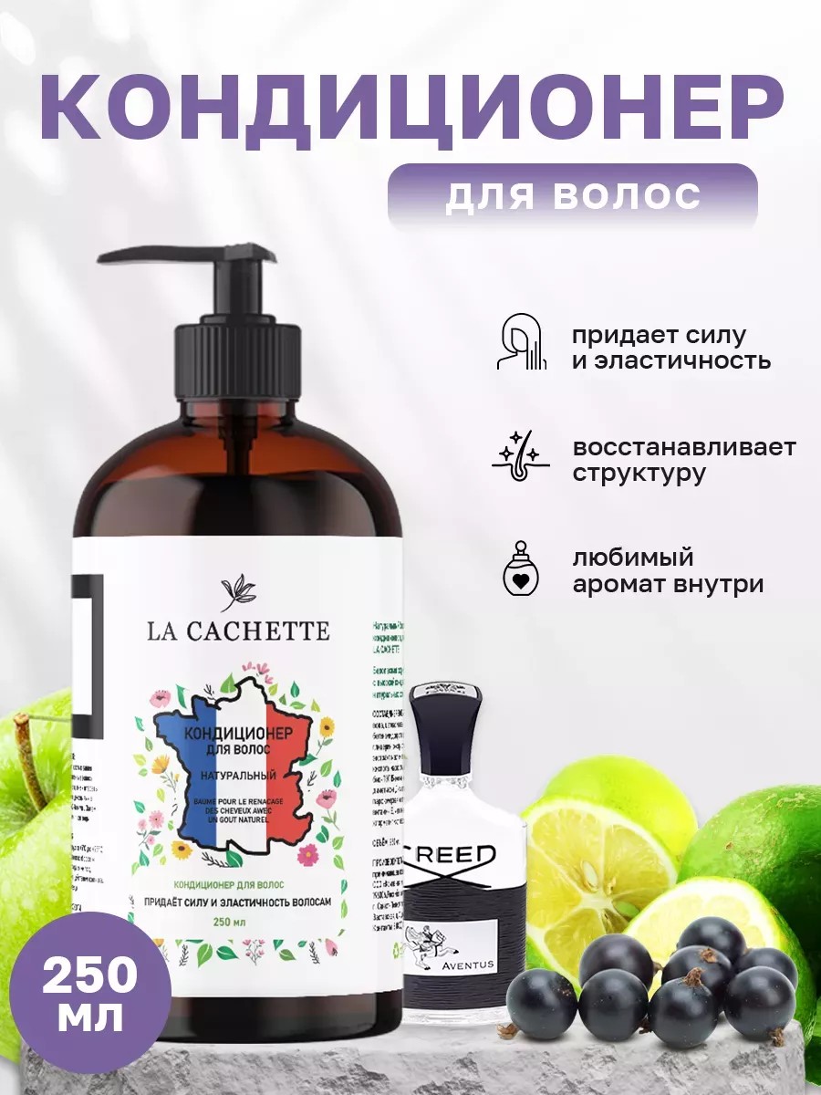 La Cachette M032 conditioner/rinse with the Aventus perfume composition by Creed is designed for the care of all hair types. Improves the condition of hair, gives strength, elasticity, resilience, well-groomed appearance and shine. Hair is easy to comb and style. How to use: Apply immediately after using shampoo to clean, damp hair. Distribute over the entire length and rub into the hair with light massage movements. Leave on for 2-3 minutes. Then rinse with plenty of warm water. Ingredients: water, cetearyl alcohol, behenamidopropyl dimethylamine, glycerin, clover extract, macleaya extract, lactic acid, sweet almond oil, bis-PEG 15-methyl ether dimethicone, D-panthenol, perfume composition, vitamin E, methylisothiazolinone, chloromethylisothiazolinone. Precautions: Avoid contact with eyes. If contact occurs, rinse thoroughly with plenty of water. This product is made using high-quality, premium ingredients. The dispenser cap allows for more economical use. Volume: 250 ml... .. Creed, Aventus