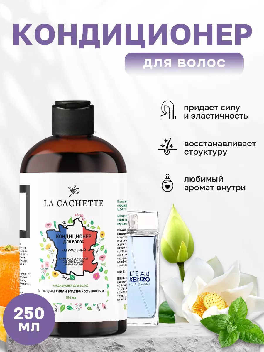 Парфюмированный бальзам-ополаскиватель/кондиционер для волос La Cachette M092 с парфюмерной композицией L'Eau par от Kenzo предназначен для ухода за волосами любого типа. Улучшает состояние волос, придает силу, эластичность, упругость, ухоженность и блеск. Волосы легко расчесываются и укладываются в прическу. Способ применения: нанести сразу после использования шампуня на чистые, влажные волосы. Распределить по всей длине и втереть легкими массажными движениями в волосы. Выдержать 2-3 минуты. Затем смыть большим количеством теплой воды. Состав: вода, цетеариловый спирт, бегенамидопропилдиметиламин, глицерин, экстракт клевера, экстракт маклеи, молочная кислота, масло сладкого миндаля, бис-ПЭГ 15-метиловый эфир диметикон, Д-пантенол, парфюмерная композиция, витамин Е, метилизотиазолинон, хлорметилизотиазолинон. Меры предосторожности: избегать попадания в глаза, при попадании тщательно промыть большим количеством воды. Продукция создана с использованием высококачественных компонентов премиального качества. Объем 250 мл... .. Кензо, Ле Пар