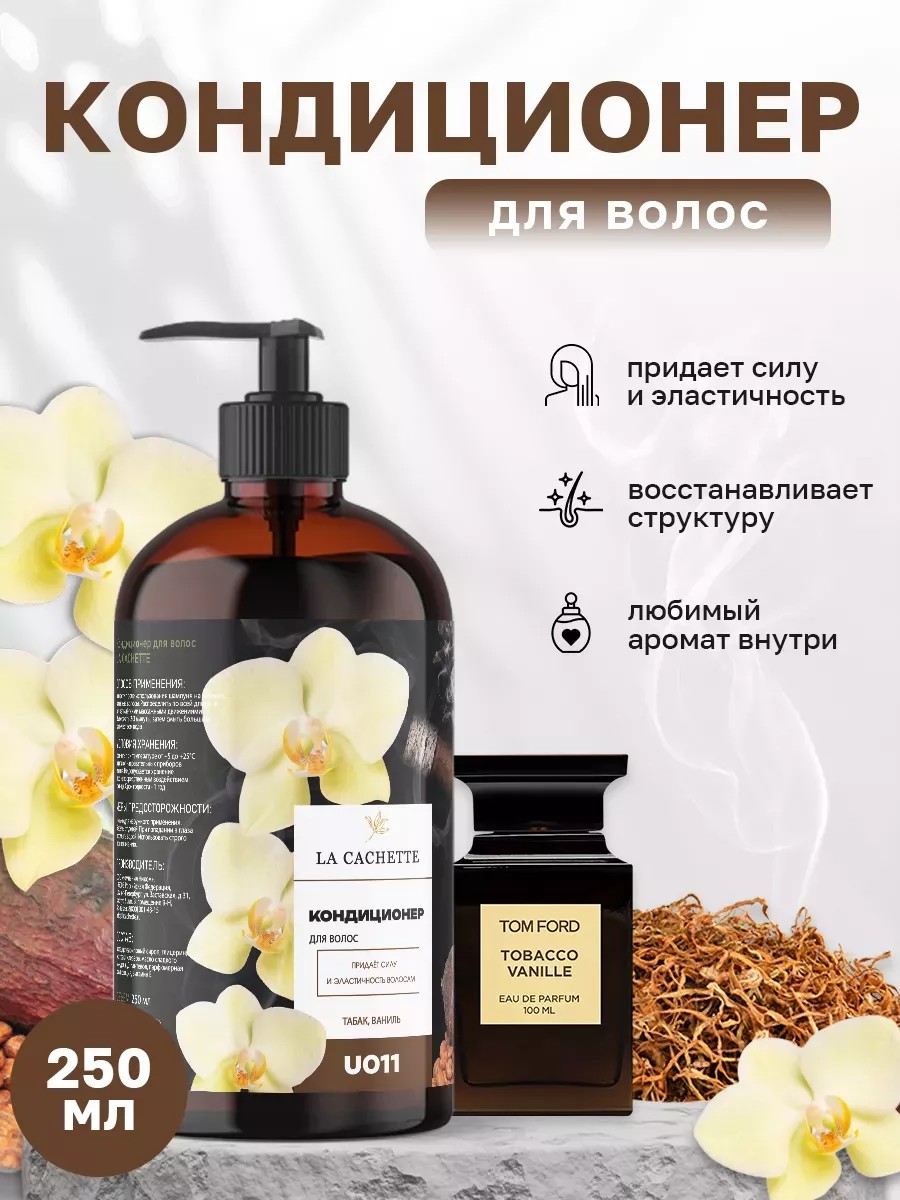 Бальзам-ополаскиватель/кондиционер для волос La Cachette U011 с парфюмерной композицией Tobacco Vanille от Tom Ford предназначен для ухода за волосами любого типа. Улучшает состояние волос, придает силу, эластичность, упругость, ухоженность и блеск. Волосы легко расчесываются и укладываются в прическу. Способ применения: нанести сразу после использования шампуня на чистые, влажные волосы. Распределить по всей длине и втереть легкими массажными движениями в волосы. Выдержать 2-3 минуты. Затем смыть большим количеством теплой воды. Состав: вода, цетеариловый спирт, бегенамидопропилдиметиламин, глицерин, экстракт клевера, экстракт маклеи, молочная кислота, масло сладкого миндаля, бис-ПЭГ 15-метиловый эфир диметикон, Д-пантенол, парфюмерная композиция, витамин Е, метилизотиазолинон, хлорметилизотиазолинон. Меры предосторожности: избегать попадания в глаза, при попадании тщательно промыть большим количеством воды. Продукция создана с использованием высококачественных компонентов премиального качества. Крышка-дозатор для более экономного использования. Объем 250 мл... .. Том Форд, Табако Тобакко Ваниль, табако ваниль, Табак ваниль