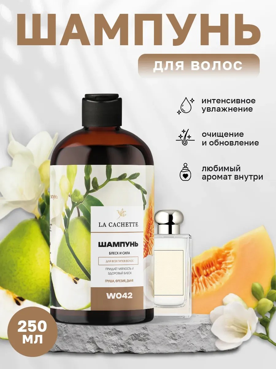 Шампунь парфюмированный для волос La Cachette W042 с парфюмерной композицией по мотивам English Pear & Freesia Cologne. Уникальное сочетание натуральных компонентов обеспечивает не только превосходное пенообразование, но и максимально бережное очищение для волос и кожи головы. Шампунь увлажняет и восстанавливает волосы по всей длине, придаёт объём и гладкость, способствует лёгкому расчёсыванию даже без применения кондиционера. При регулярном использовании способствует сокращению частоты мытья волос. Подходит для всех типов волос. Не содержит парабенов и красителей. Продукция создана с использованием высококачественных компонентов премиального качества. Присутствуют ноты: Груша, Фрезия и Роза, Мускус, Пачули, Ревень и Амбра... .. Английская Груша И Фрезия/Инглиш Пиар Фрезия