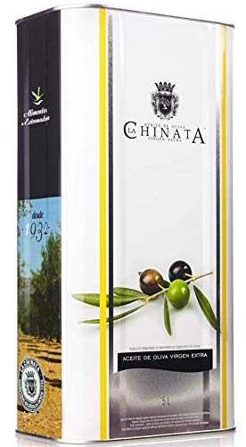 Huile d'olive extra vierge espagnole en boîte de 5 l - La Chinata - Avec entonnoir pliable pour un versement facile - Sans gluten - 100 végétale (végétalien) - Sans lactose
