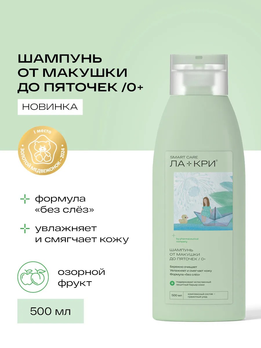Детский очищающий шампунь от макушки до пяточек 0+ с формулой «без слез» от ЛА-КРИ – разработан специально для ухода за волосами малышей и уменьшения дискомфорта и раздражения глаз во время купания в ванной. Профессиональный продукт поддерживает естественные функции кожного покрова, способствует восстановлению и укреплению волосяных луковиц. Активные компоненты: гипоаллергенные моющие вещества обеспечивают мягкое очищение даже самой чувствительной кожи головы. Экстракт солодки и фиалки снимают покраснения и шелушения. Кератин включен для легкого расчесывания волос, придания им гладкости и шелковистости, а также уменьшения их электризуемости. Протеины пшеницы оказывают увлажняющее, смягчающее и восстанавливающее действие. Уходовое бессульфатное средство подходит для ежедневного применения как мальчиками, так и девочками. Мягкий состав не щиплет глазки ребенка, подарит ему отличное настроение и наполнит водные процедуры радостью. Не содержит сульфатов, отдушек, парабенов и силиконов. ЛА-КРИ – аптечная косметика для детей, которому доверяют мамы.