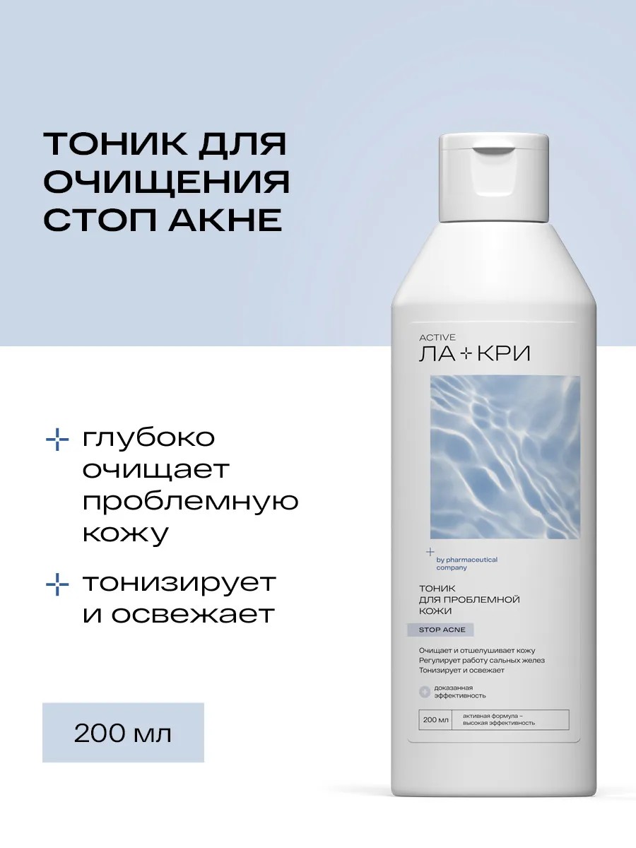 Освежающий тоник для проблемной кожи Стоп Акне от ЛА-КРИ предназначен для глубокого очищения лица, удаления загрязнений, излишек кожного сала и ежедневного ухода за мужской и женской кожей склонной к акне. Активные натуральные компоненты: комплекс Alpaflor Alp-Sebum контролирует работу сальных желез, уменьшает жирный блеск и оказывает противовоспалительное действие. Экстракт солодки снимает воспаление, покраснение и шелушение. Экстракт череды имеет успокаивающие свойства, которые помогают устранить раздражение. Бетаин поддерживает естественный гидробаланс клеток дермы. Аллантоин смягчает и отшелушивает мертвые клетки. Себорегулирующий и отшелушивающий тонер не содержит красителей, отдушек, спирта и парабенов, может использоваться в период беременности и после родов. Он способствует сужению пор и выравниванию тона, предотвращает появление черных точек, прыщей и высыпаний, обладает матирующим эффектом. Уходовое очищающее средство от расширенных пор подойдет как мужчинам, девушкам и женщинам, так и мальчикам, и девочкам с чувствительной и комбинированной кожей. Способ применения: нанести небольшое количество на ватный тампон. Предварительно очисть лицо, шею и зону декольте, избегая области вокруг глаз. Использовать 2 раза в день утром и вечером. ЛАКРИ - это аптечная косметика, основанная на достижениях современной косметологии и фармакологии.